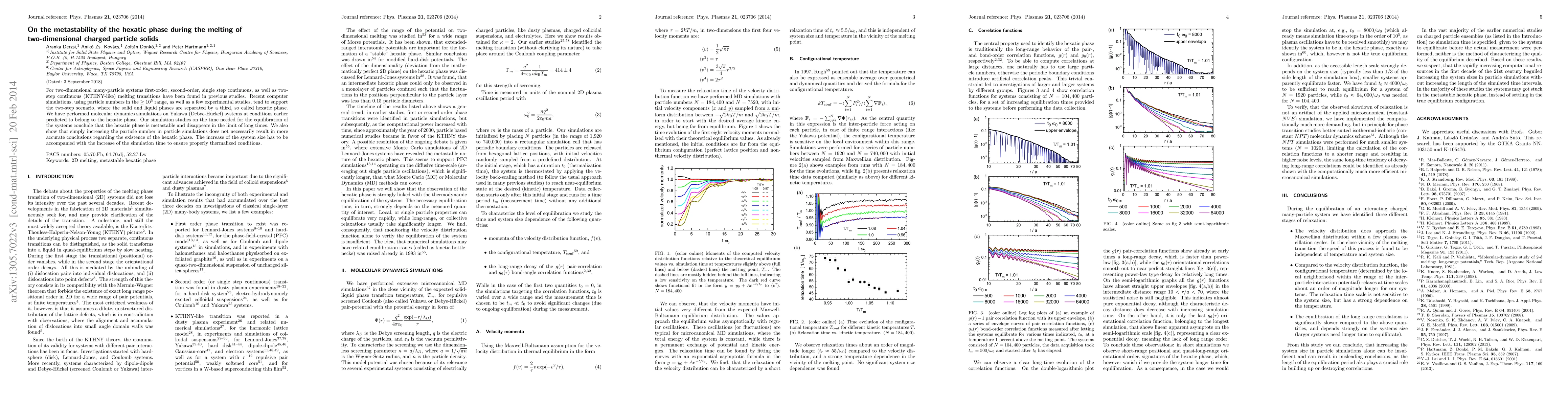 This paper investigates the metastability of the hexatic phase during the melting of two-dimensional charged particle solids, finding that it is metastable and disappears over long times. It emphasizes that larger system sizes in simulations must be paired with extended simulation times to accurately determine the phase's existence.