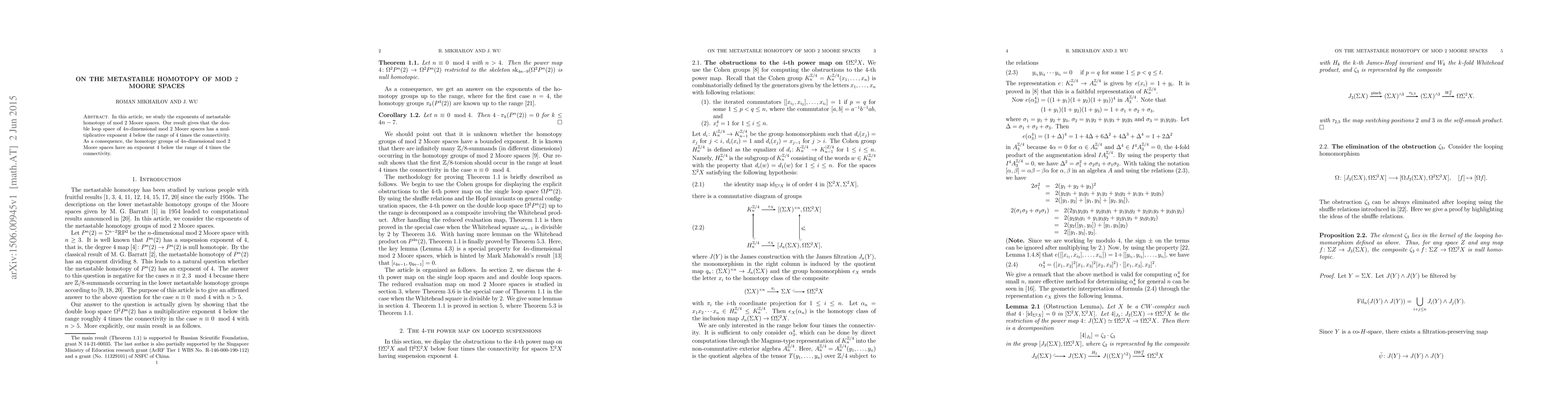 This paper investigates the metastable homotopy of mod 2 Moore spaces, revealing that the double loop space of $4n$-dimensional mod 2 Moore spaces exhibits a multiplicative exponent $4$ below the expected range, with similar findings for their homotopy groups.