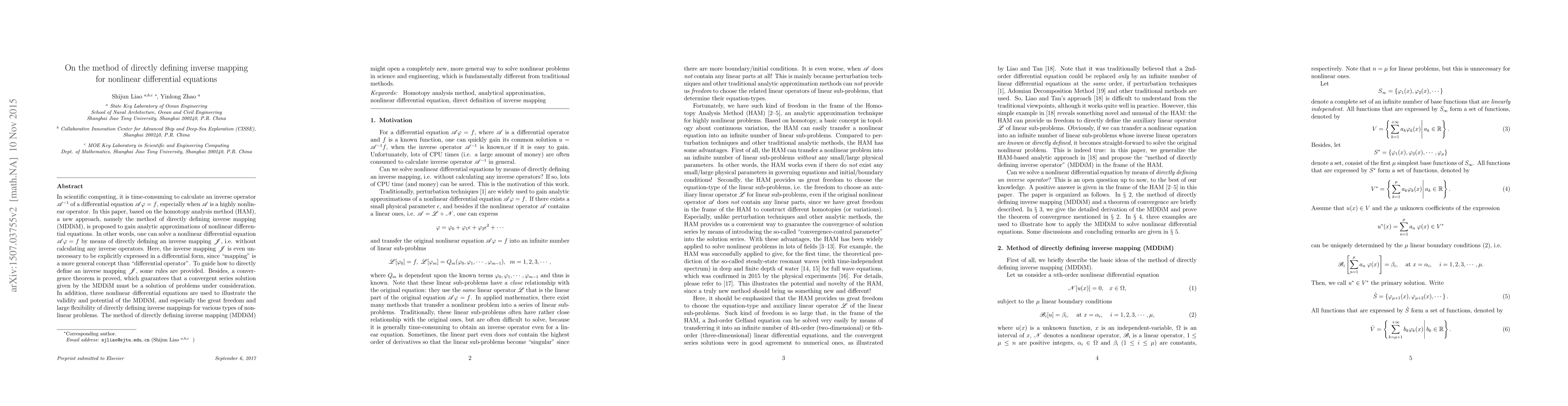 A new method called Directly Defining Inverse Mapping (MDDiM) is proposed to solve nonlinear differential equations without calculating inverse operators, offering a more general approach with great freedom and flexibility.