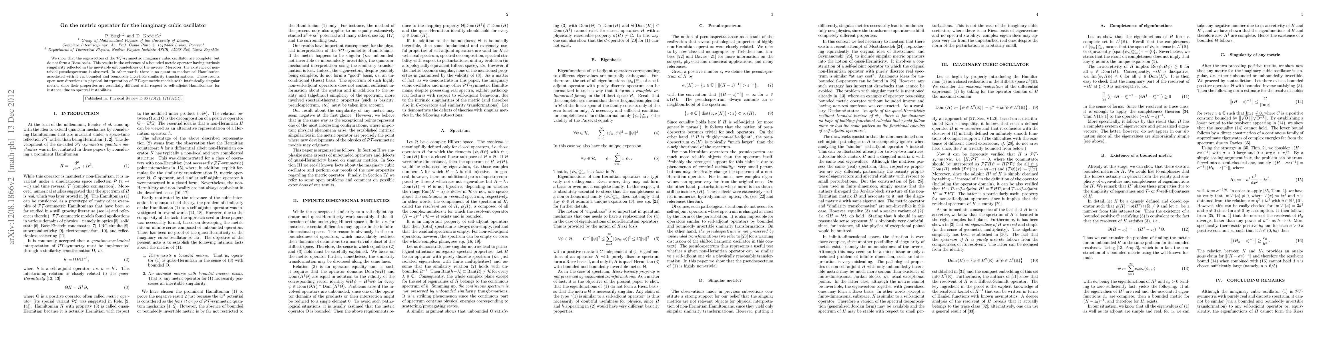 The imaginary cubic oscillator's eigenvectors do not form a Riesz basis, leading to an unbounded metric operator and pseudospectrum, highlighting differences in PT-symmetric models compared to self-adjoint Hamiltonians.