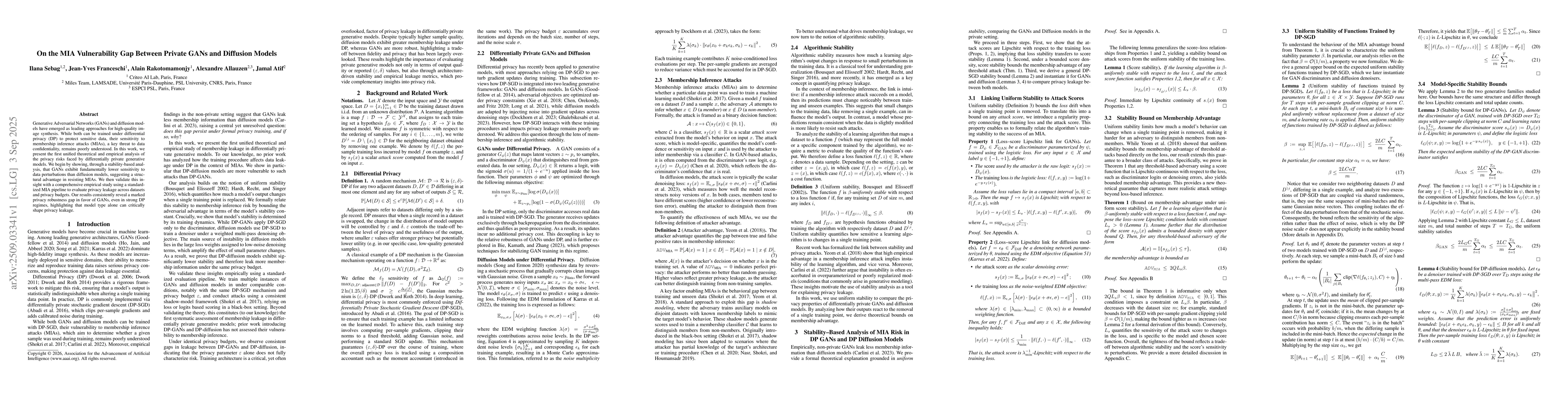 Generative Adversarial Networks (GANs) and diffusion models have emerged as leading approaches for high-quality image synthesis. While both can be trained under differential privacy (DP) to protect sensitive data, their sensitivity to membership inference attacks (MIAs), a key threat to data confidentiality, remains poorly understood. In this work, we present the first unified theoretical and empirical analysis of the privacy risks faced by differentially private generative models. We begin by showing, through a stability-based analysis, that GANs exhibit fundamentally lower sensitivity to data perturbations than diffusion models, suggesting a structural advantage in resisting MIAs. We then validate this insight with a comprehensive empirical study using a standardized MIA pipeline to evaluate privacy leakage across datasets and privacy budgets. Our results consistently reveal a marked privacy robustness gap in favor of GANs, even in strong DP regimes, highlighting that model type alone can critically shape privacy leakage.