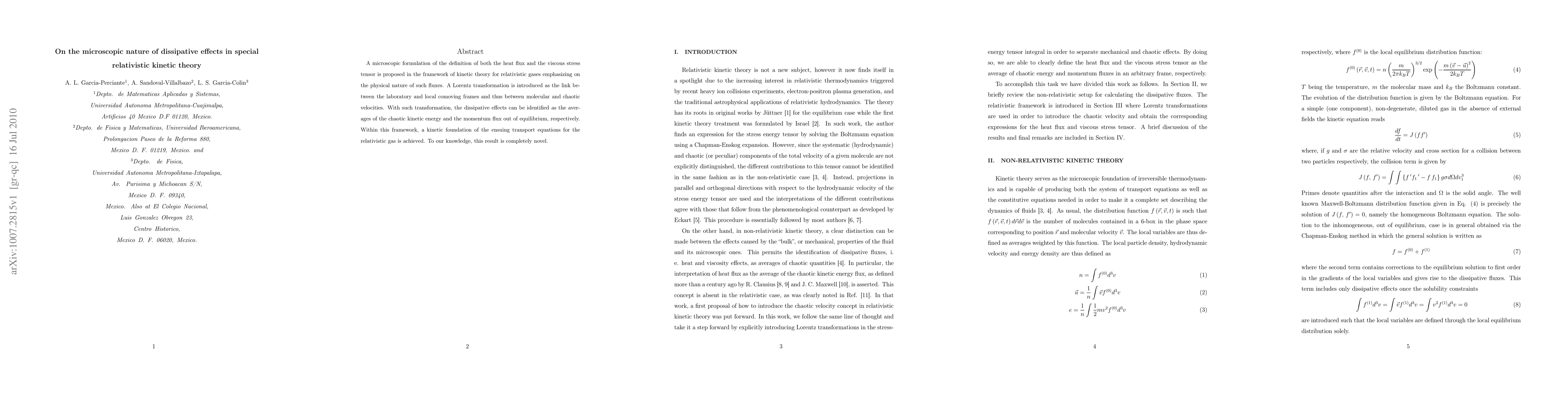This paper proposes a microscopic formulation for defining heat flux and viscous stress tensor in relativistic kinetic theory, linking laboratory and local frames via Lorentz transformation. It identifies dissipative effects as averages of chaotic kinetic energy and momentum flux, providing a novel kinetic foundation for transport equations in relativistic gases.