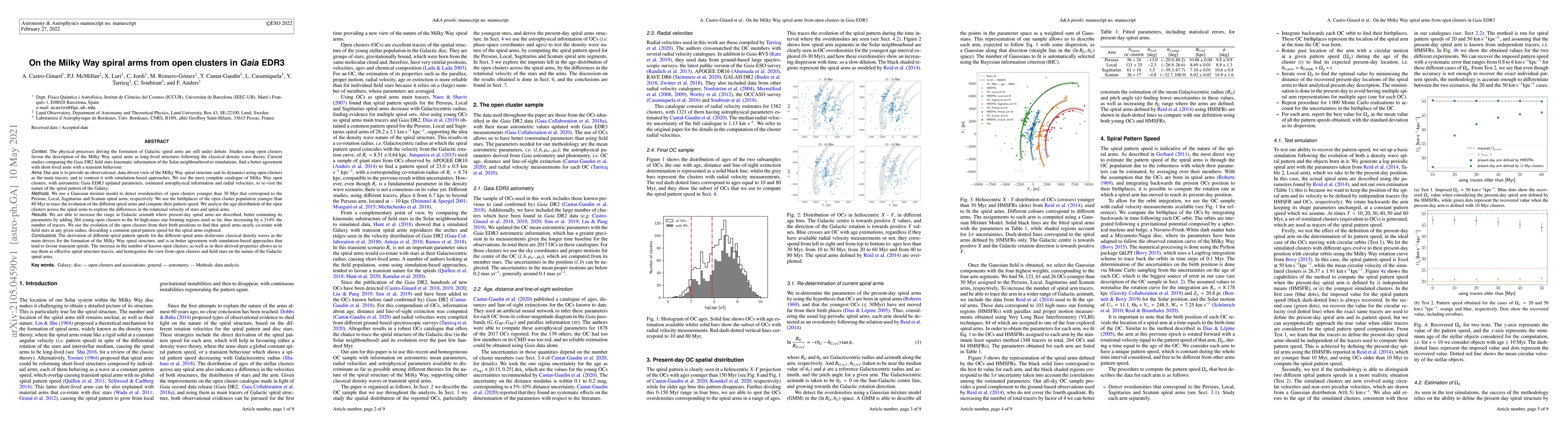 This study uses Gaia EDR3 data to analyze Milky Way spiral arms through open clusters, finding that they likely follow long-lived structures according to classical density wave theory. The research reveals the spiral arms nearly co-rotate with field stars, challenging a uniform spiral pattern speed.