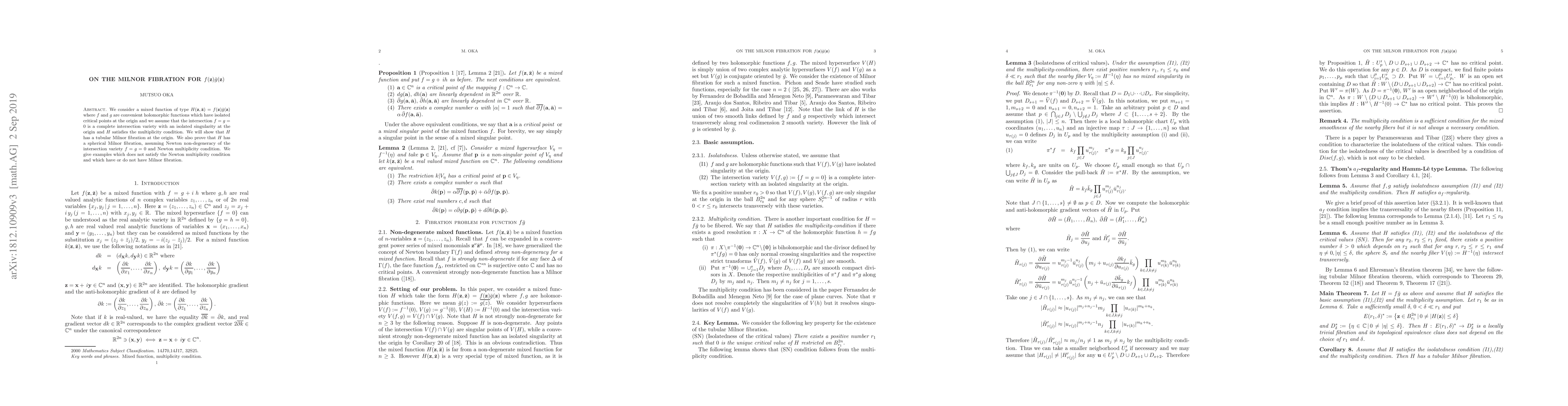 This paper investigates the Milnor fibration for the mixed function \(H(\mathbf z, \bar{\mathbf z}) = f(\mathbf z)\bar g(\mathbf z)\), where \(f\) and \(g\) are holomorphic functions with isolated critical points at the origin. It establishes the existence of tubular and spherical Milnor fibrations under certain conditions and provides examples contrasting cases where the Newton multiplicity condition is or is not satisfied.