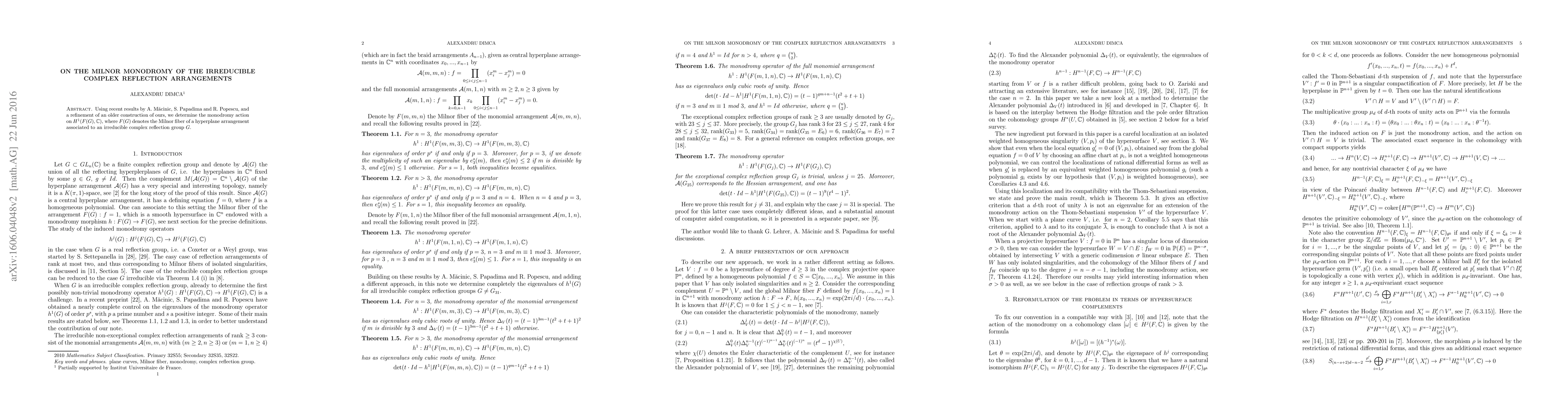 Using recent results by A. Macinic, S. Papadima and R. Popescu, and a refinement of an older construction of ours, we determine the monodromy action on $H^1(F(G),C)$, where $F(G)$ denotes the Milnor fiber of a hyperplane arrangement associated to an irreducible complex reflection group $G$.