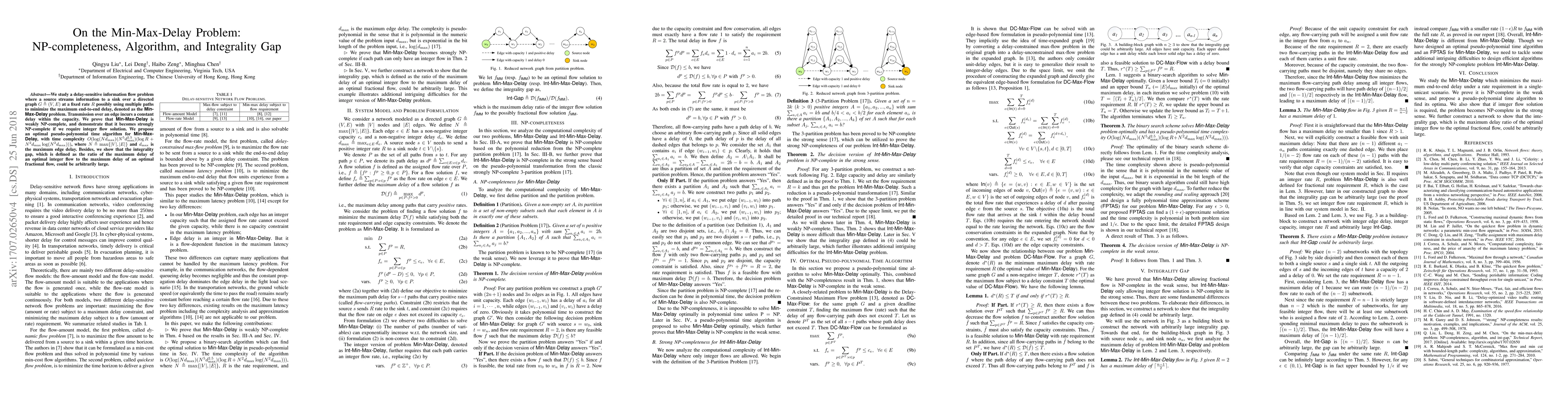 This paper investigates the Min-Max-Delay problem, proving its NP-completeness and presenting an optimal pseudo-polynomial time algorithm. It also demonstrates that the integrality gap can be arbitrarily large, highlighting the challenge of finding integer solutions.