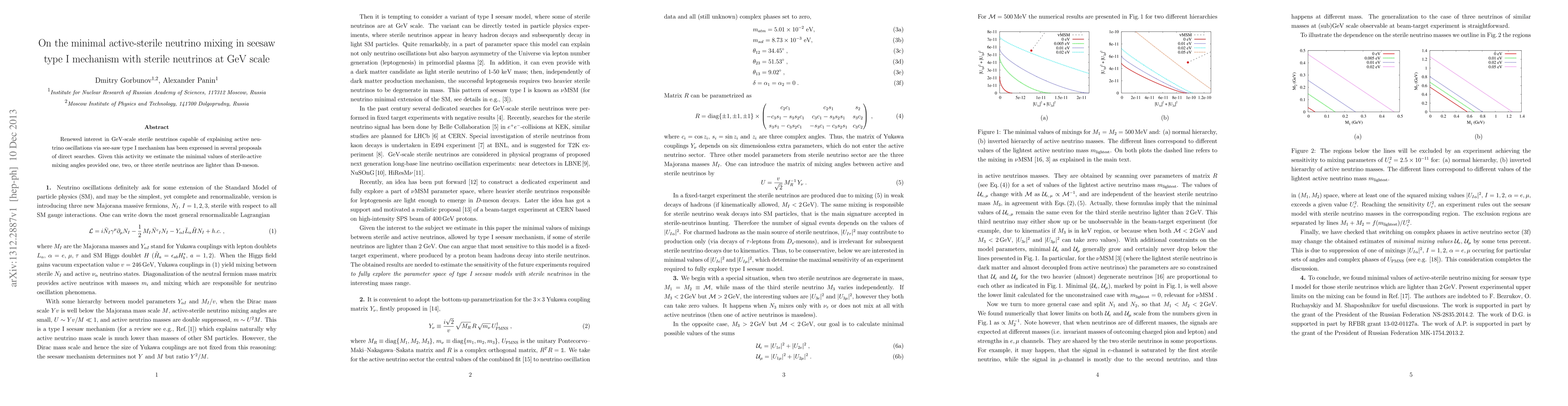 This paper investigates the minimal active-sterile neutrino mixing angles in the seesaw type I mechanism when sterile neutrinos exist at the GeV scale. It estimates these minimal values for scenarios with one, two, or three sterile neutrinos lighter than a D-meson.