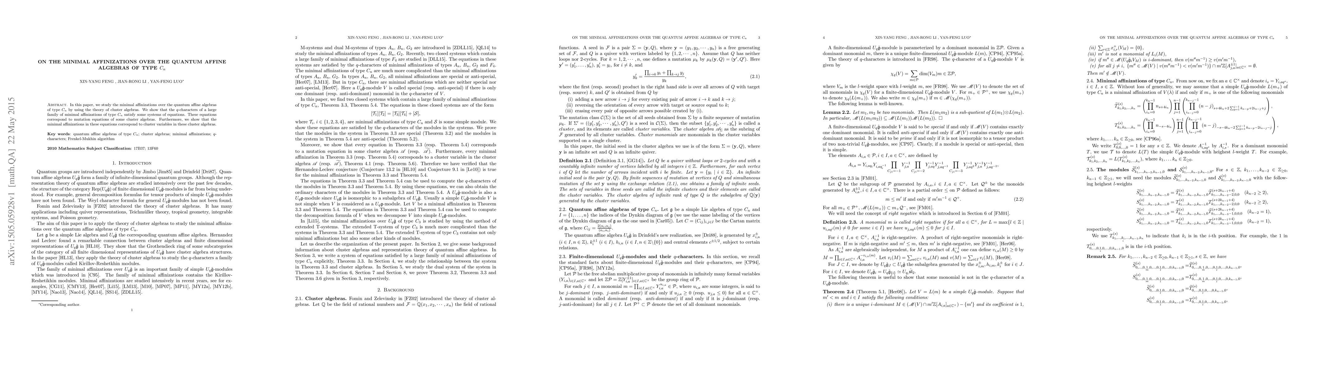 This paper explores the minimal affinizations over quantum affine algebras of type $C_n$ using cluster algebras, demonstrating that their $q$-characters satisfy mutation equations corresponding to cluster algebras, with minimal affinizations mapping to cluster variables.