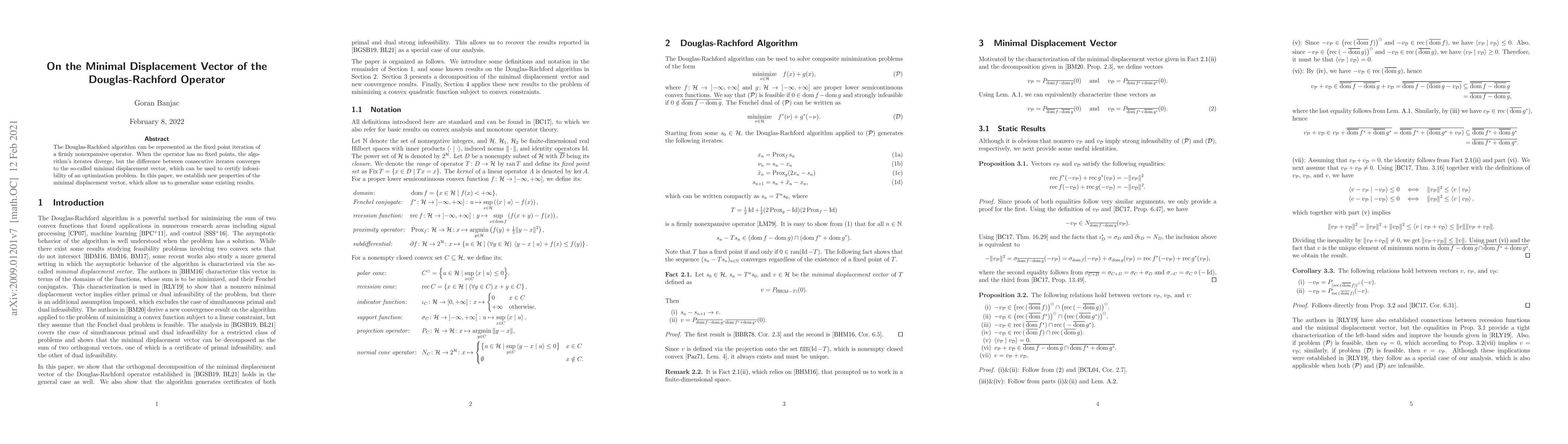 Researchers studied the Douglas-Rachford algorithm's minimal displacement vector, establishing new properties that allow for generalization of existing results, enabling certification of infeasibility in optimization problems.