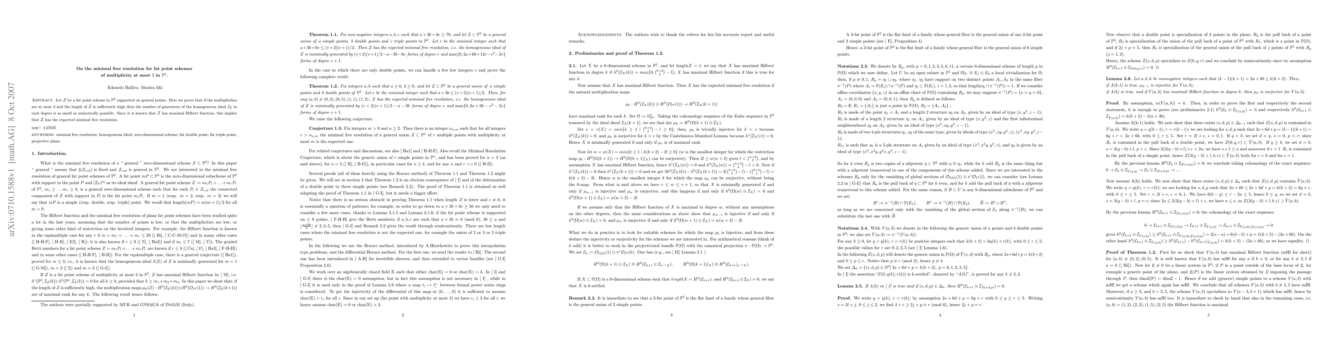 Let Z be a fat point scheme in P^2 supported on general points. Here we prove that if the multiplicities are at most 3 and the length of Z is sufficiently high then the number of generators of the homogeneous ideal I_Z in each degree is as small as numerically possible. Since it is known that Z has maximal Hilbert function, this implies that Z has the expected minimal free resolution.