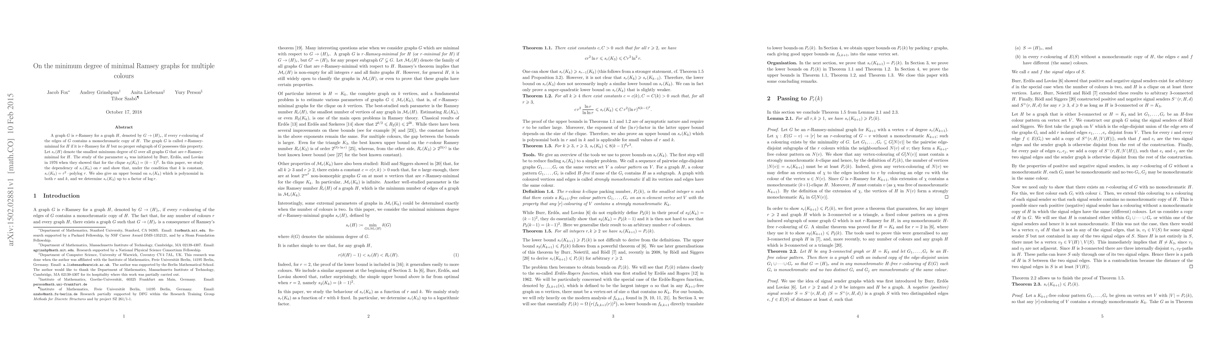 This paper explores the minimum degree of minimal Ramsey graphs for multiple colours, specifically focusing on the parameter s_r(K_k), which represents the smallest minimum degree of r-Ramsey-minimal graphs for the clique K_k. The authors show that under constant k, s_r(K_k) = r^2 polylog r, and provide an upper bound that is polynomial in r and k.