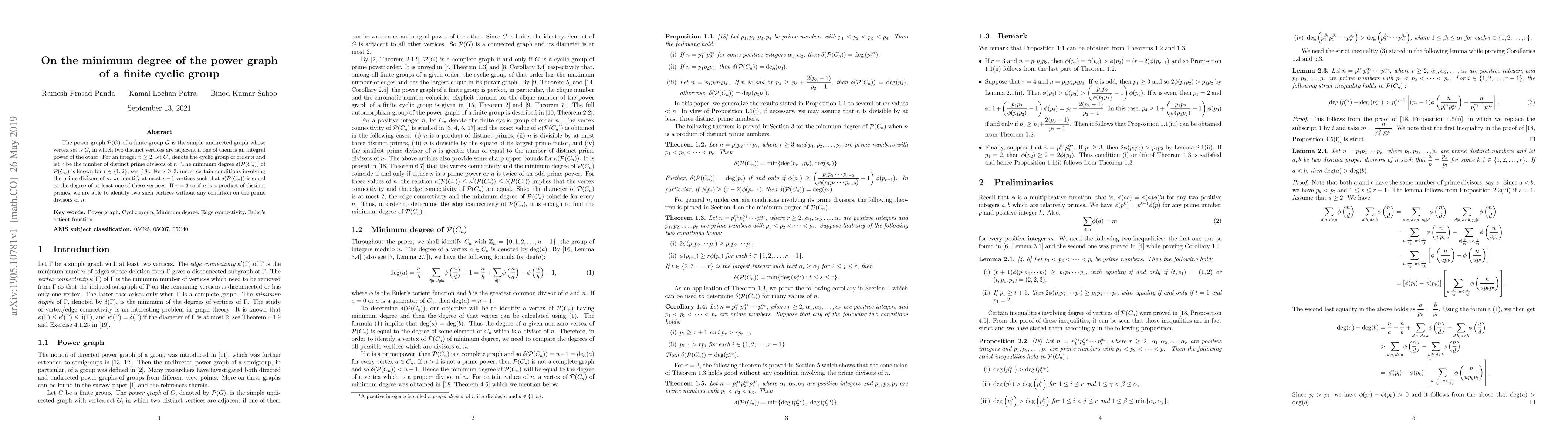 This paper investigates the minimum degree of the power graph of a finite cyclic group, with key findings including identification of vertices with specific degrees for certain values of r and n.