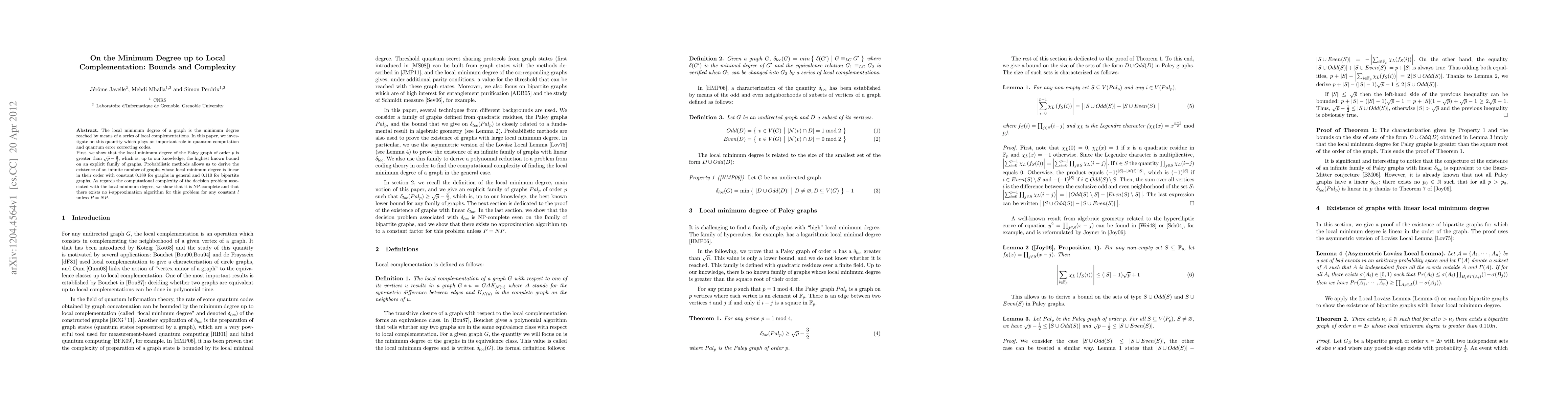 Researchers have made significant progress in understanding the local minimum degree of graphs, which has implications for quantum computation and error-correcting codes. They have established bounds on this quantity and proven that determining it is NP-complete.