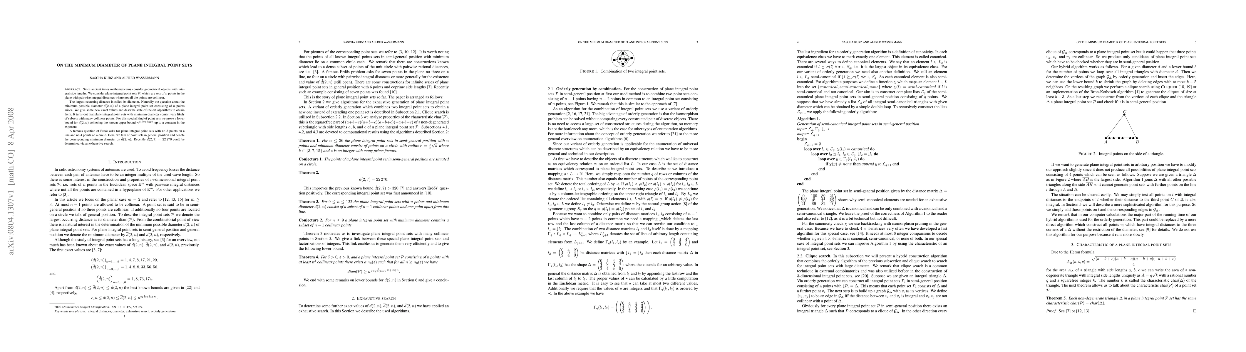 Since ancient times mathematicians consider geometrical objects with integral side lengths. We consider plane integral point sets $\mathcal{P}$, which are sets of $n$ points in the plane with pairwise integral distances where not all the points are collinear. The largest occurring distance is called its diameter. Naturally the question about the minimum possible diameter $d(2,n)$ of a plane integral point set consisting of $n$ points arises. We give some new exact values and describe state-of-the-art algorithms to obtain them. It turns out that plane integral point sets with minimum diameter consist very likely of subsets with many collinear points. For this special kind of point sets we prove a lower bound for $d(2,n)$ achieving the known upper bound $n^{c_2\log\log n}$ up to a constant in the exponent. A famous question of Erd\H{o}s asks for plane integral point sets with no 3 points on a line and no 4 points on a circle. Here, we talk of point sets in general position and denote the corresponding minimum diameter by $\dot{d}(2,n)$. Recently $\dot{d}(2,7)=22 270$ could be determined via an exhaustive search.