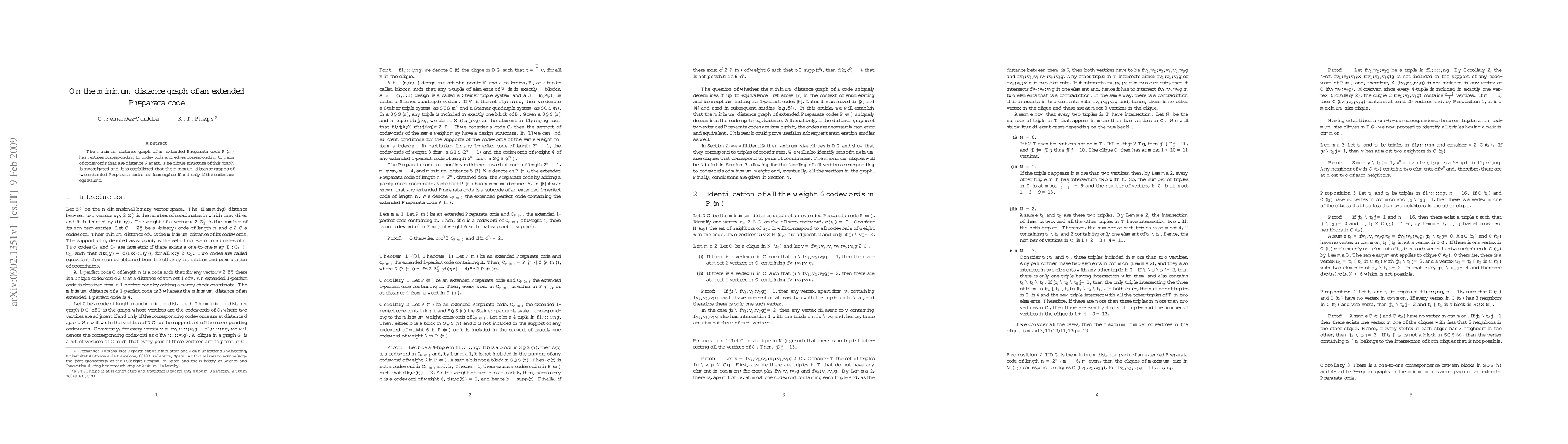 The paper investigates the minimum distance graph of extended Preparata codes and finds that two codes with isomorphic graphs are equivalent.