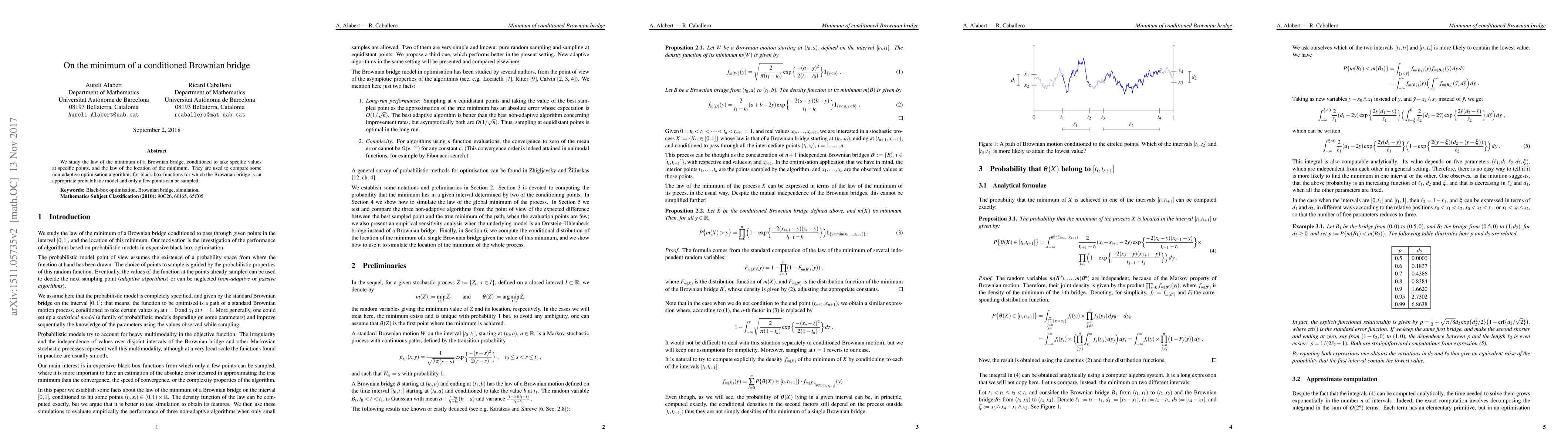 This paper studies the minimum of a Brownian bridge conditioned to specific values, exploring its law and implications for non-adaptive optimization algorithms in black-box functions.
