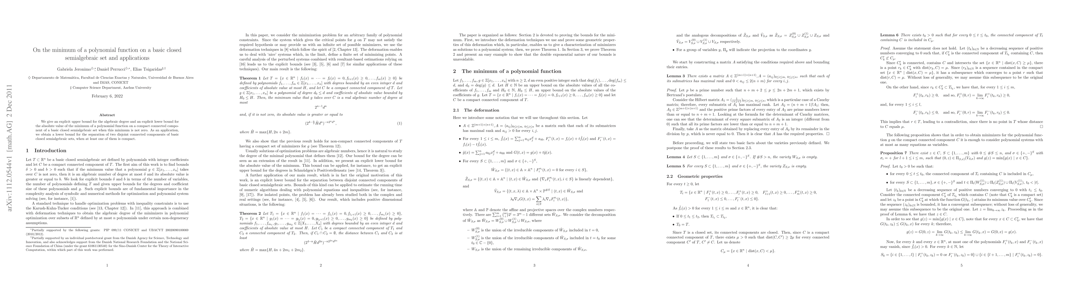 Researchers find explicit bounds for the minimum value of a polynomial function on compact connected components of basic closed semialgebraic sets, with implications for separating disjoint components.