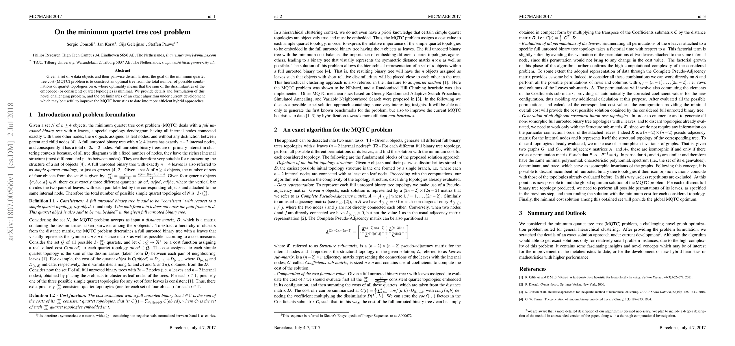 This paper introduces the minimum quartet tree cost (MQTC) problem, aiming to construct an optimal tree by minimizing the sum of dissimilarities across quartet topologies. An exact algorithm is under development to potentially enhance existing heuristics into more efficient hybrid approaches.