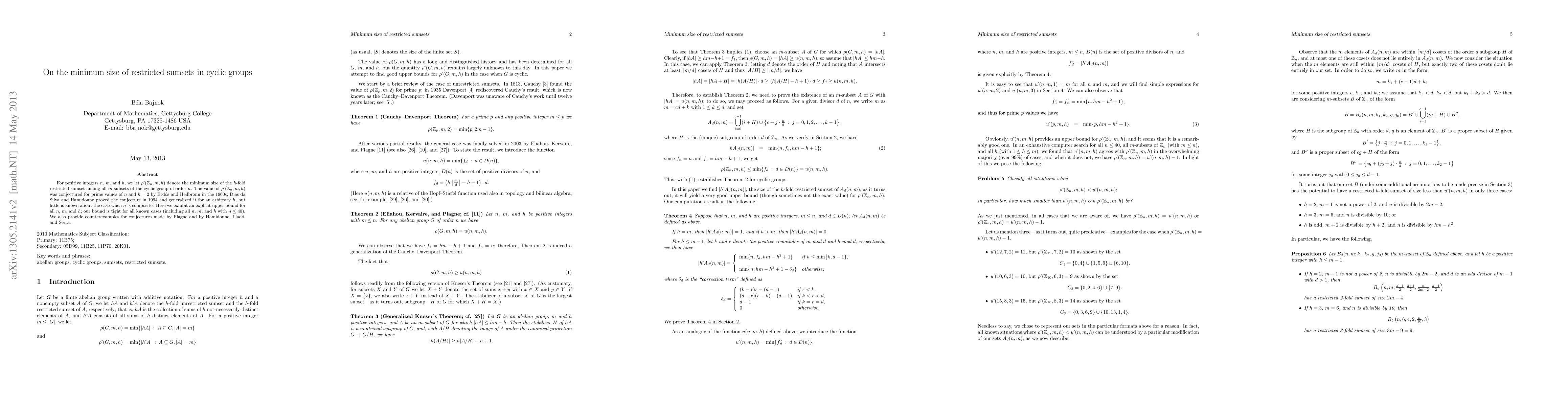 For positive integers $n$, $m$, and $h$, we let $\rho \hat{\;}(\mathbb{Z}_n, m, h)$ denote the minimum size of the $h$-fold restricted sumset among all $m$-subsets of the cyclic group of order $n$. The value of $\rho \hat{\;}(\mathbb{Z}_n, m, h)$ was conjectured for prime values of $n$ and $h=2$ by Erd\H{o}s and Heilbronn in the 1960s; Dias da Silva and Hamidoune proved the conjecture in 1994 and generalized it for an arbitrary $h$, but little is known about the case when $n$ is composite. Here we exhibit an explicit upper bound for all $n$, $m$, and $h$; our bound is tight for all known cases (including all $n$, $m$, and $h$ with $n \leq 40$). We also provide counterexamples for conjectures made by Plagne and by Hamidoune, Llad\'o, and Serra.
