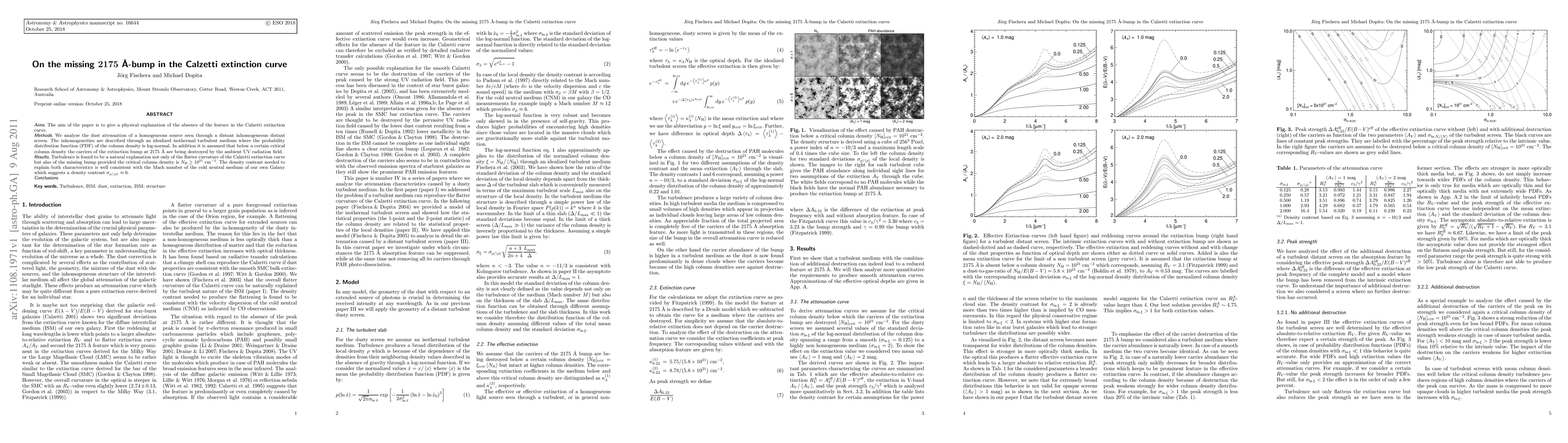 This paper explores the absence of the 2175 Angstroem bump in the Calzetti extinction curve, attributing it to turbulence in an inhomogeneous medium. The study finds that turbulence, combined with a critical column density of N_H >= 10^21 cm^-2, explains both the bump's absence and the curve's flatter curvature.