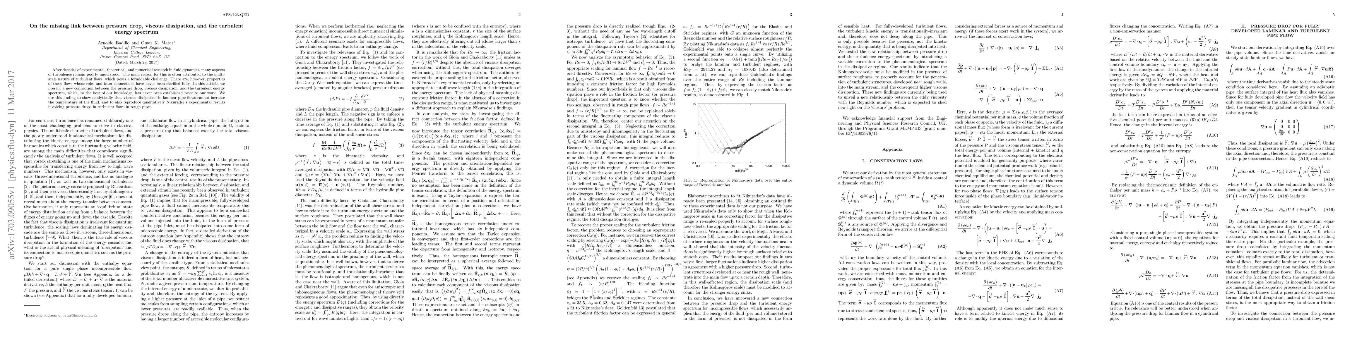 This paper establishes a new link between pressure drop, viscous dissipation, and the turbulent energy spectrum, clarifying their inter-connections in fluid dynamics. It demonstrates that viscous dissipation in laminar pipe flows does not raise fluid temperature and reproduces Nikuradse's experimental results on pressure drops in turbulent rough pipe flows.