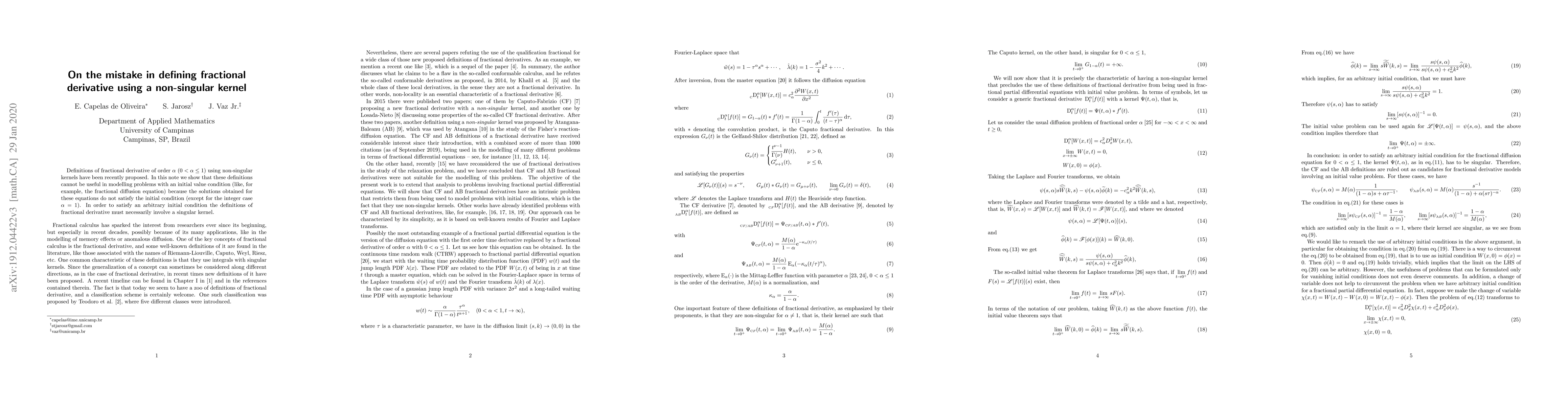 This paper critiques definitions of fractional derivatives using non-singular kernels, demonstrating they fail to satisfy initial conditions in fractional differential equations, unlike those with singular kernels. It concludes that singular kernels are essential for accurate modeling.
