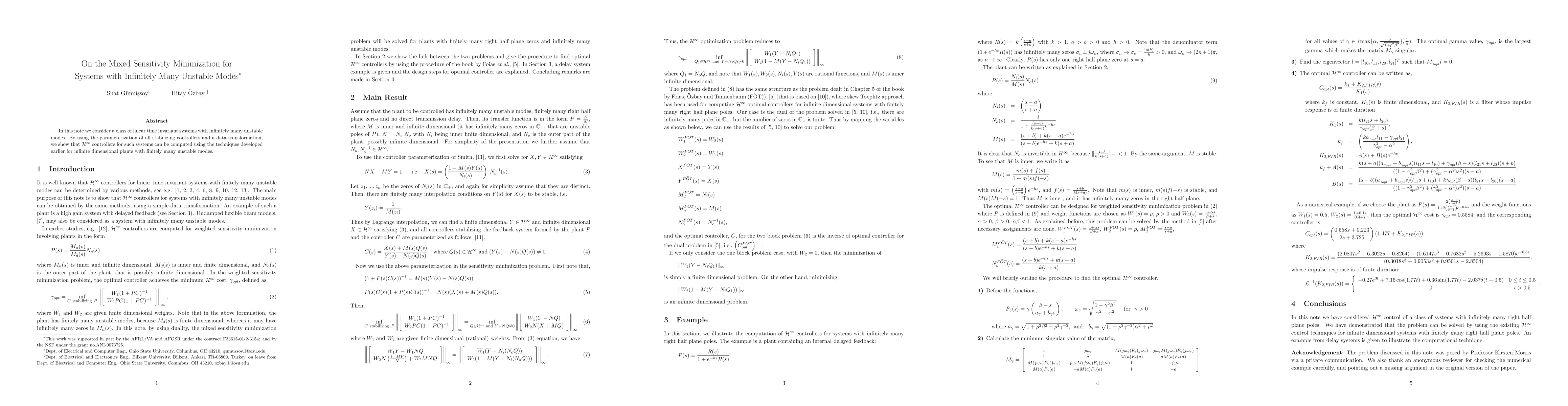 Summary: This paper explores methods for computing H-infinity controllers for linear time-invariant systems with infinitely many unstable modes, utilizing controller parameterization and data transformation to adapt existing techniques for systems with finite unstable modes.