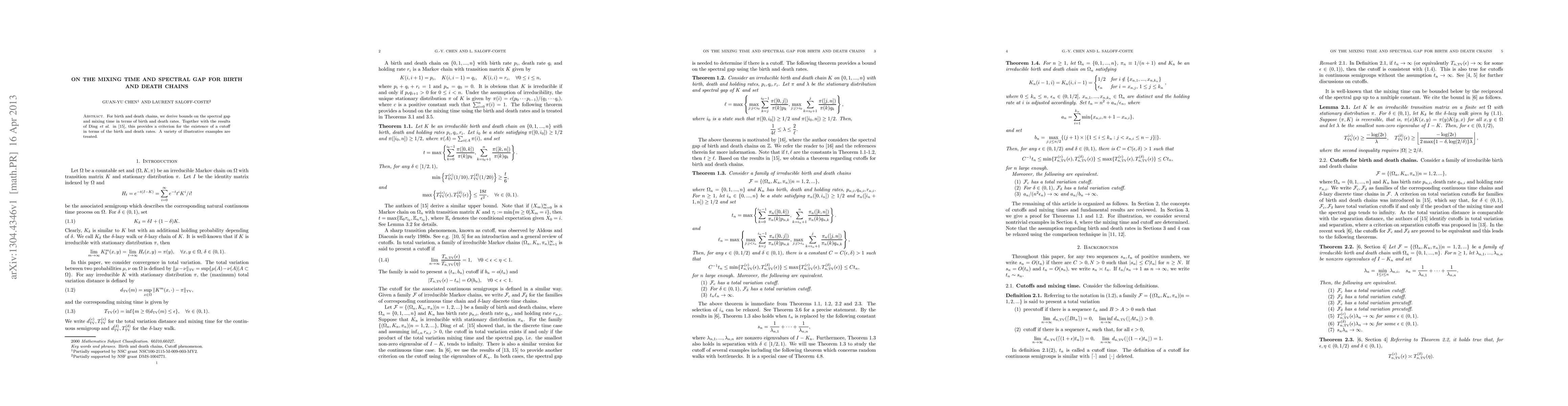 For birth and death chains, we derive bounds on the spectral gap and mixing time in terms of birth and death rates. Together with the results of Ding et al. in 2010, this provides a criterion for the existence of a cutoff in terms of the birth and death rates. A variety of illustrative examples are treated.