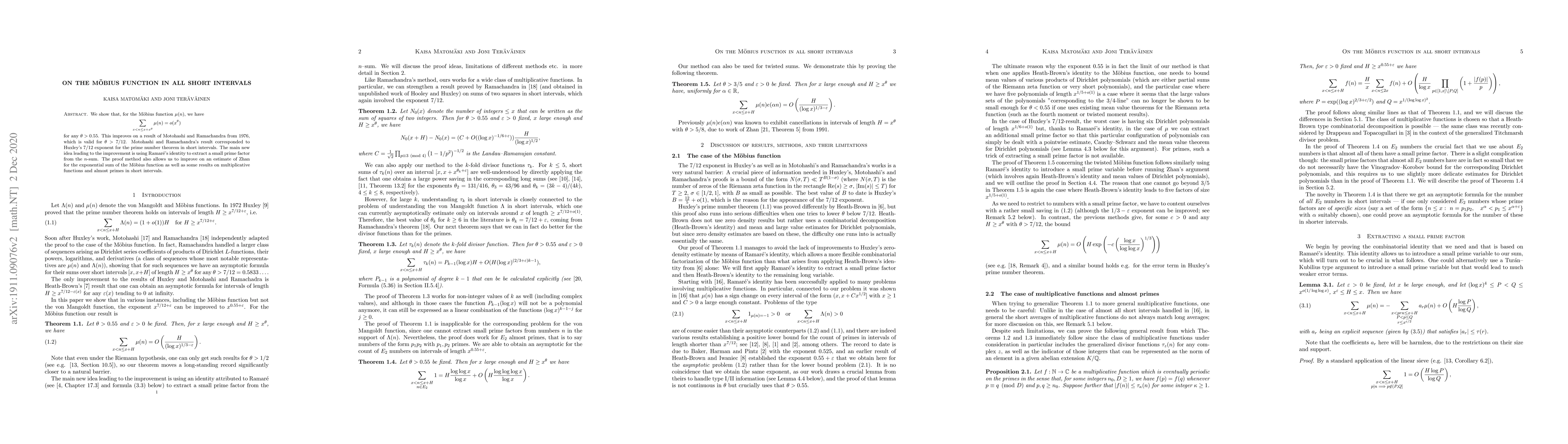 We show that, for the M\"obius function $\mu(n)$, we have $$ \sum_{x < n\leq x+x^{\theta}}\mu(n)=o(x^{\theta}) $$ for any $\theta>0.55$. This improves on a result of Ramachandra from 1976, which is valid for $\theta>7/12$. Ramachandra's result corresponded to Huxley's $7/12$ exponent for the prime number theorem in short intervals. The main new idea leading to the improvement is using Ramar\'e's identity to extract a small prime factor from the $n$-sum. The proof method also allows us to improve on an estimate of Zhan for the exponential sum of the M\"obius function as well as some results on multiplicative functions and almost primes in short intervals.