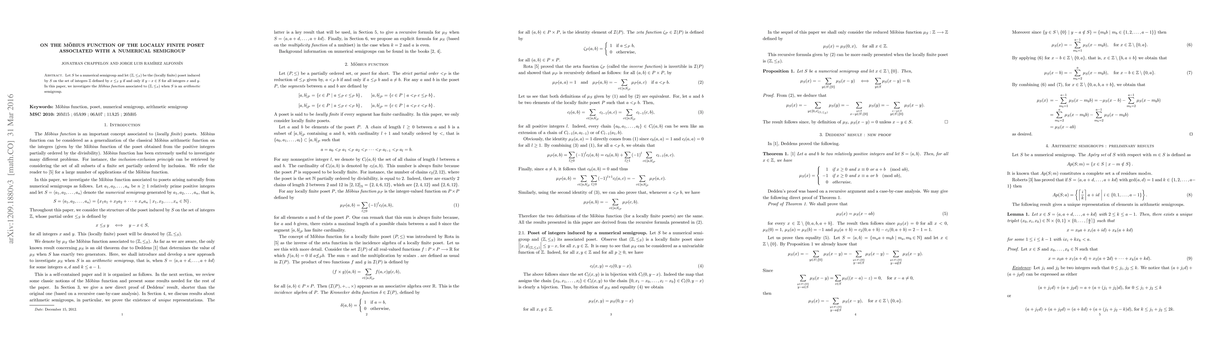 Let $S$ be a numerical semigroup and let $\left(\mathbb{Z},\leqslant\_S\right)$ be the (locally finite) poset induced by $S$ on the set of integers $\mathbb{Z}$ defined by $x \leqslant\_S y$ if and only if $y-x\in S$ for all integers $x$ and $y$. In this paper, we investigate the M{\"o}bius function associated to $\left(\mathbb{Z},\leqslant\_S\right)$ when $S$ is an arithmetic semigroup.