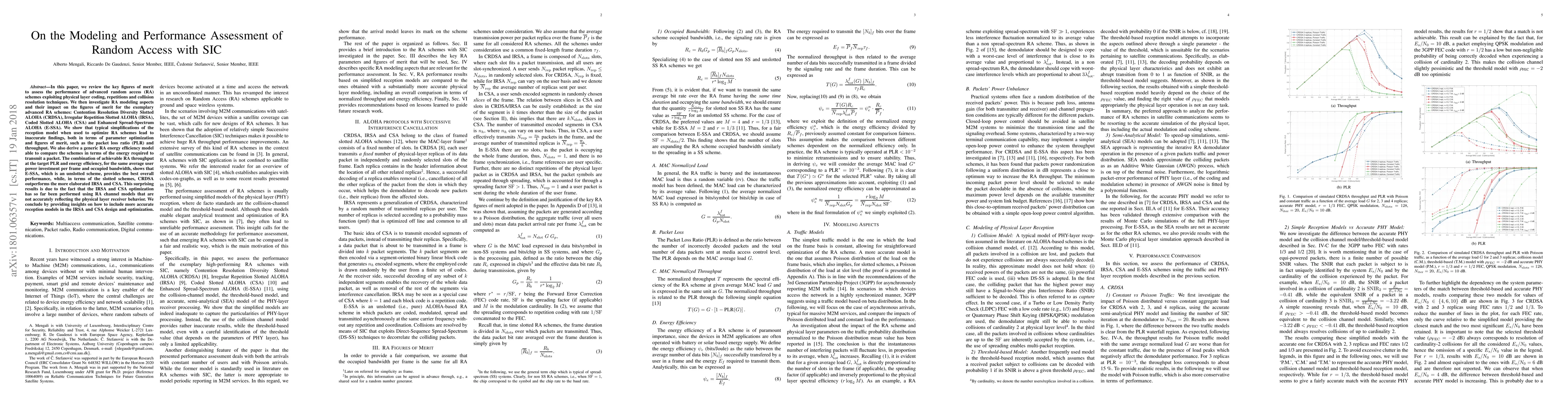 In this paper, we review the key figures of merit to assess the performance of advanced random access (RA) schemes exploiting physical layer coding, repetitions and collision resolution techniques. We then investigate RA modeling aspects and their impact on the figures of merit for the exemplary advanced RA schemes: Contention Resolution Diversity Slotted ALOHA (CRDSA), Irregular Repetition Slotted ALOHA (IRSA), Coded Slotted ALOHA (CSA) and Enhanced Spread-Spectrum ALOHA (E-SSA). We show that typical simplifications of the reception model when used to optimize RA schemes lead to inaccurate findings, both in terms of parameter optimization and figures of merit, such as the packet loss ratio (PLR) and throughput. We also derive a generic RA energy efficiency model able to compare the schemes in terms of the energy required to transmit a packet. The combination of achievable RA throughput at the target PLR and energy efficiency, for the same average user power investment per frame and occupied bandwidth, shows that E-SSA, which is an unslotted scheme, provides the best overall performance, while, in terms of the slotted schemes, CRDSA outperforms the more elaborated IRSA and CSA. This surprising results is due to the fact that the IRSA and CSA optimization has so far been performed using RA channel models that are not accurately reflecting the physical layer receiver behavior. We conclude by providing insights on how to include more accurate reception models in the IRSA and CSA design and optimization.