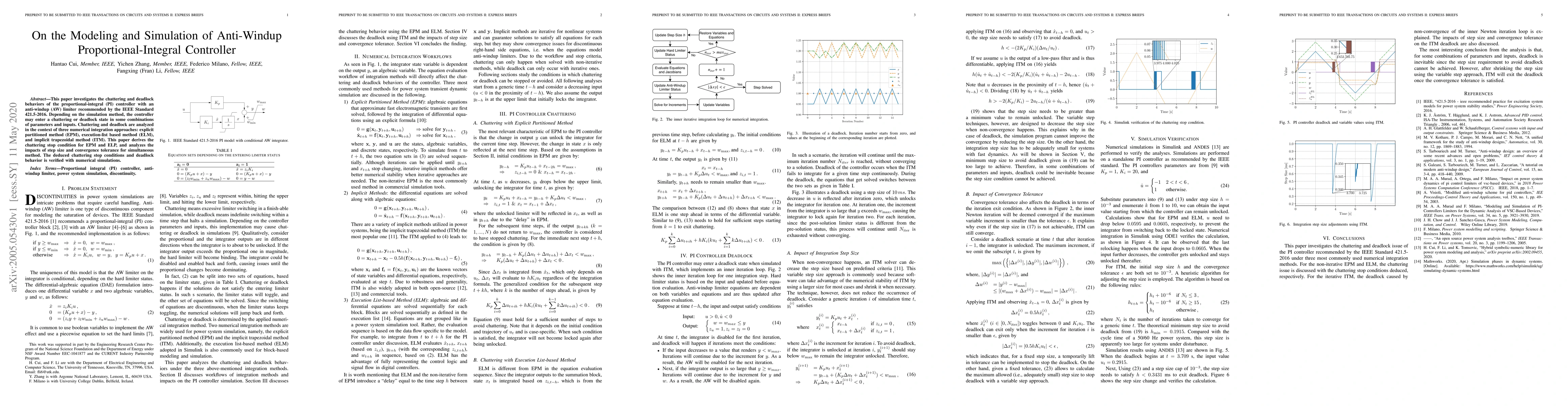 This paper investigates the chattering and deadlock behaviors of the proportional-integral (PI) controller with an anti-windup (AW) limiter recommended by the IEEE Standard 421.5-2016. Depending on the simulation method, the controller may enter a chattering or deadlock state in some combinations of parameters and inputs. Chattering and deadlock are analyzed in the context of three numerical integration approaches: explicit partitioned method (EPM), execution-list based method (ELM), and implicit trapezoidal method (ITM). This paper derives the chattering stop condition for EPM and ELP, and analyzes the impacts of step size and convergence tolerance for simultaneous method. The deduced chattering stop conditions and deadlock behavior is verified with numerical simulations.