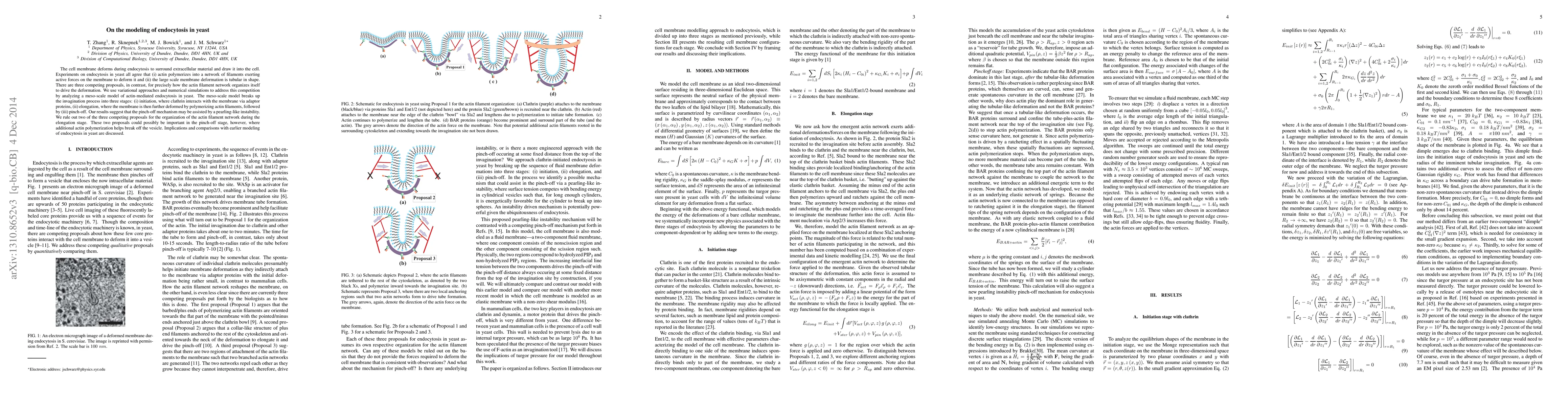 This paper explores the actin-mediated endocytosis process in yeast using variational approaches and numerical simulations. It identifies the three stages of endocytosis and suggests that a pearling-like instability assists in the pinch-off stage, while ruling out two competing models for actin filament organization during the elongation stage.