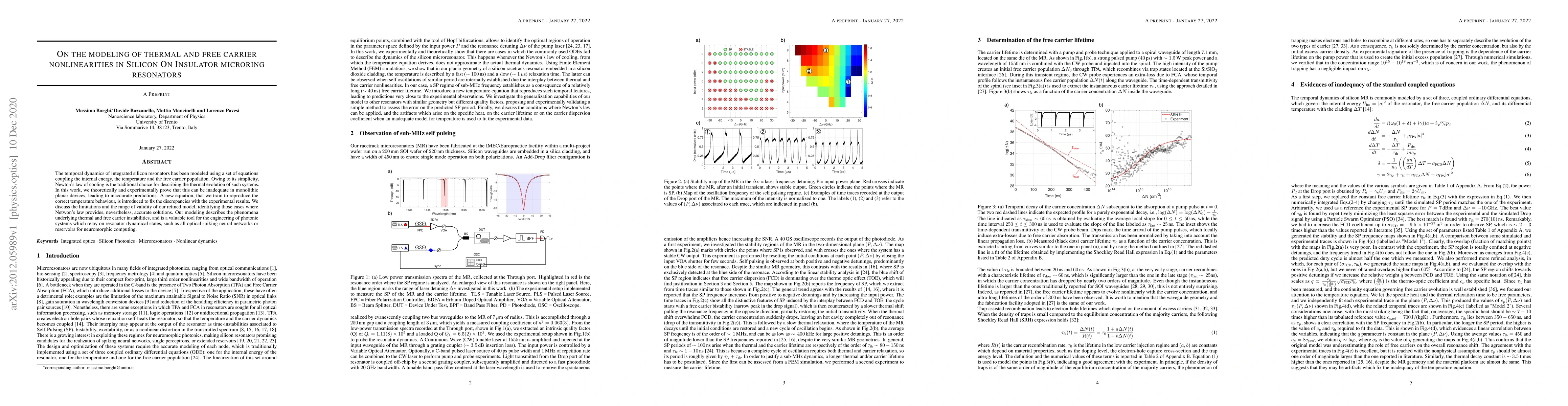 This research introduces a refined model for temporal dynamics in silicon resonators, addressing inaccuracies in Newton's law of cooling for monolithic planar devices. The new equation improves predictions of thermal and free carrier behavior, beneficial for designing photonic systems like optical neural networks.