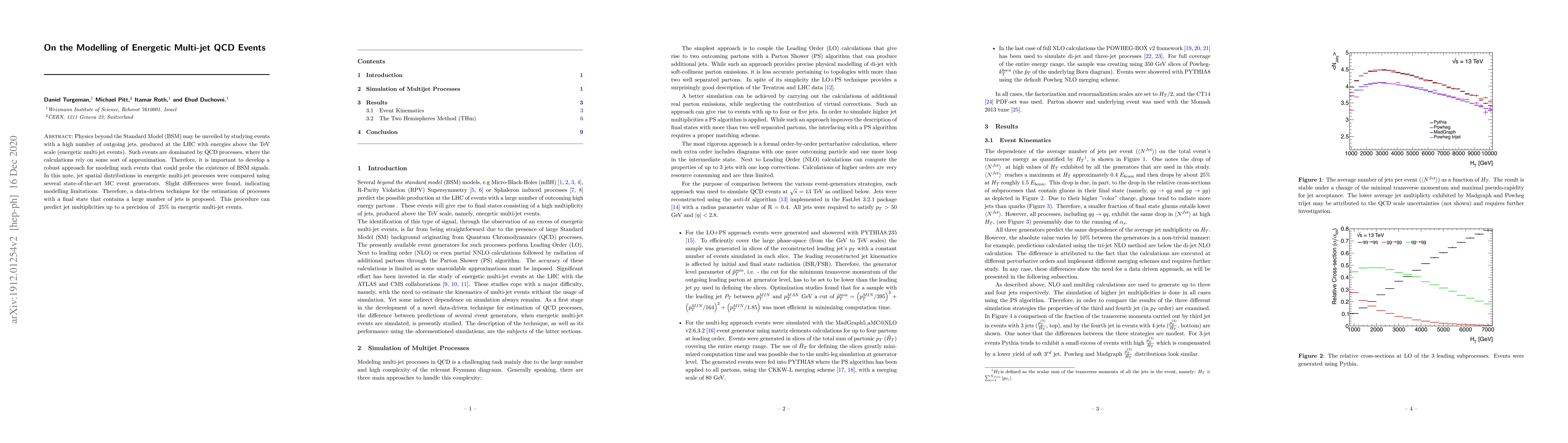 Physics beyond the Standard Model (BSM) may be unveiled by studying events with a high number of outgoing jets, produced at the LHC with energies above the TeV scale (energetic multi-jet events). Such events are dominated by QCD processes, where the calculations rely on some sort of approximation. Therefore, it is important to develop a robust approach for modeling such events that could probe the existence of BSM signals. In this note, jet spatial distributions in energetic multi-jet processes were compared using several state-of-the-art MC event generators. Slight differences were found, indicating modelling limitations. Therefore, a data-driven technique for the estimation of processes with a final state that contains a large number of jets is proposed. This procedure can predict jet multiplicities up to a precision of ~25\% in energetic multi-jet events.