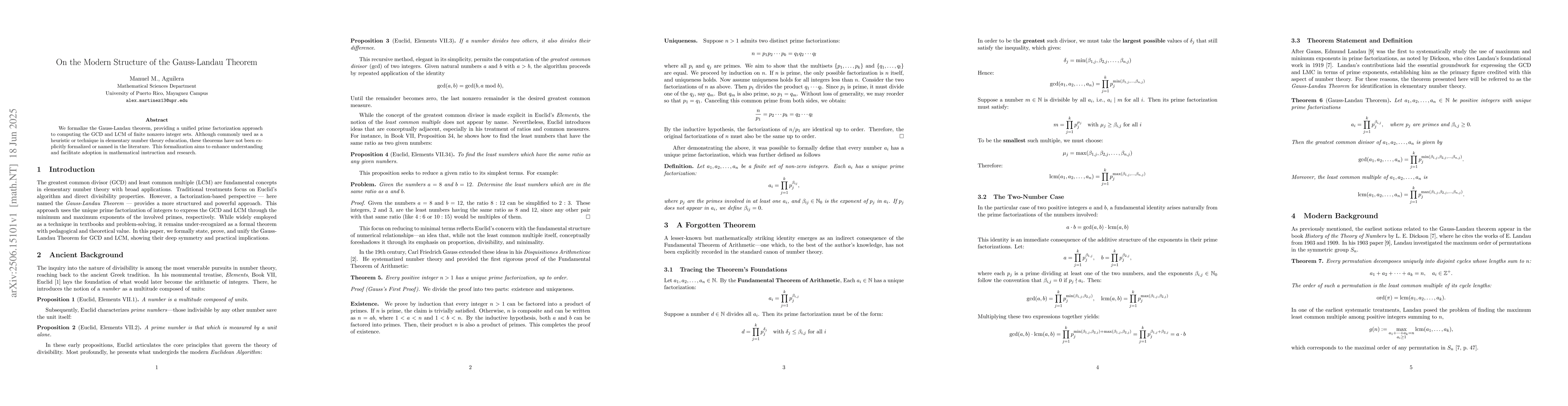 We formalize the Gauss-Landau theorem, providing a unified prime factorization approach to computing the GCD and LCM of finite nonzero integer sets. Although commonly used as a heuristic or technique in elementary number theory education, these theorems have not been explicitly formalized or named in the literature. This formalization aims to enhance understanding and facilitate adoption in mathematical instruction and research.
