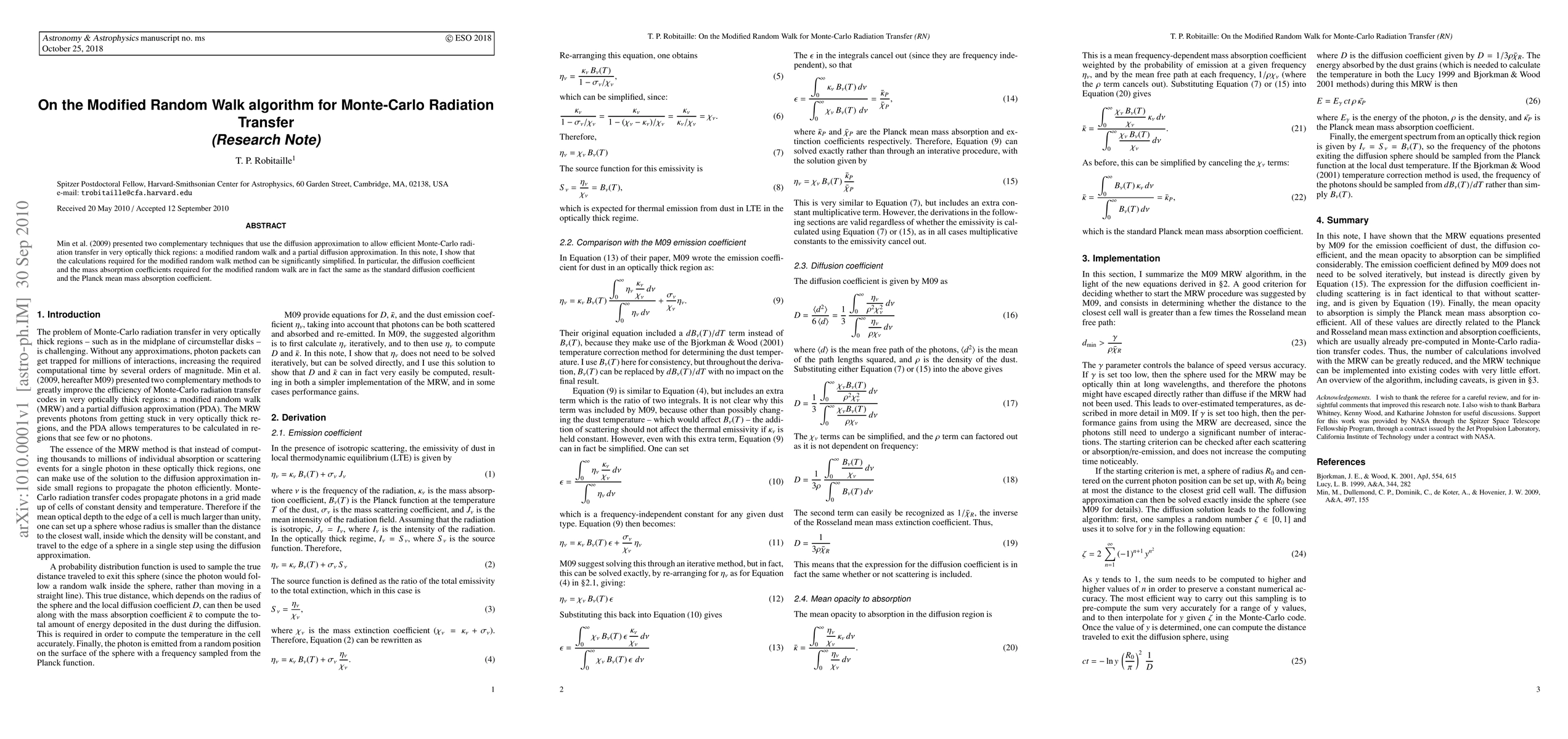 Min et al. (2009) presented two complementary techniques that use the diffusion approximation to allow efficient Monte-Carlo radiation transfer in very optically thick regions: a modified random walk and a partial diffusion approximation. In this note, I show that the calculations required for the modified random walk method can be significantly simplified. In particular, the diffusion coefficient and the mass absorption coefficients required for the modified random walk are in fact the same as the standard diffusion coefficient and the Planck mean mass absorption coefficient.
