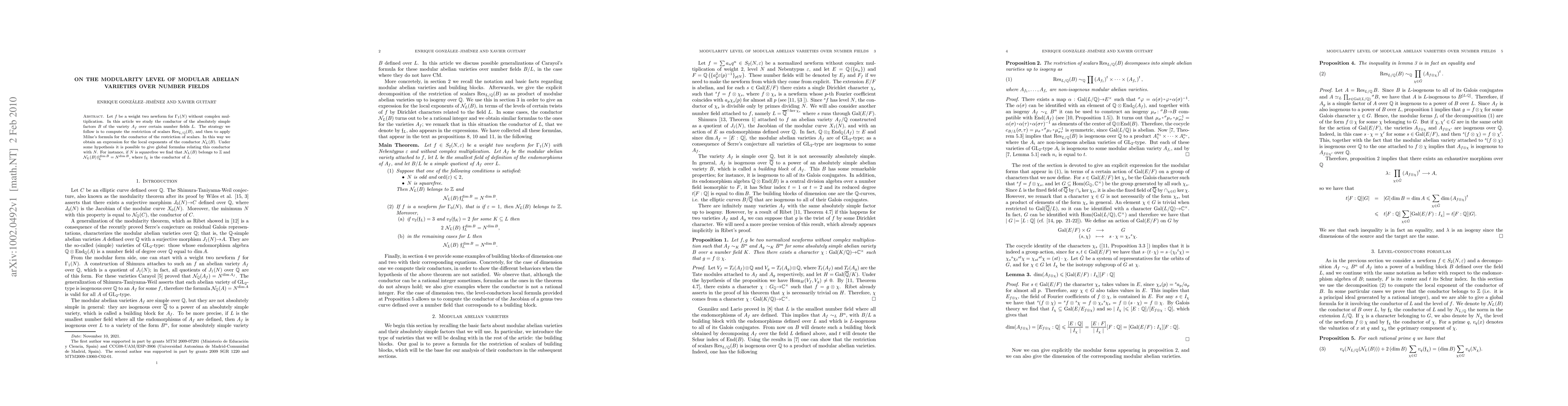 Let f be a weight two newform for Gamma_1(N) without complex multiplication. In this article we study the conductor of the absolutely simple factors B of the variety A_f over certain number fields L. The strategy we follow is to compute the restriction of scalars Res_{L/\Q}(B), and then to apply Milne's formula for the conductor of the restriction of scalars. In this way we obtain an expression for the local exponents of the conductor N_L(B). Under some hypothesis it is possible to give global formulas relating this conductor with N. For instance, if N is squarefree we find that N_L(B) belongs to Z and N_L(B)*f_L^{dim B}=N^{dim B}, where f_L is the conductor of L.