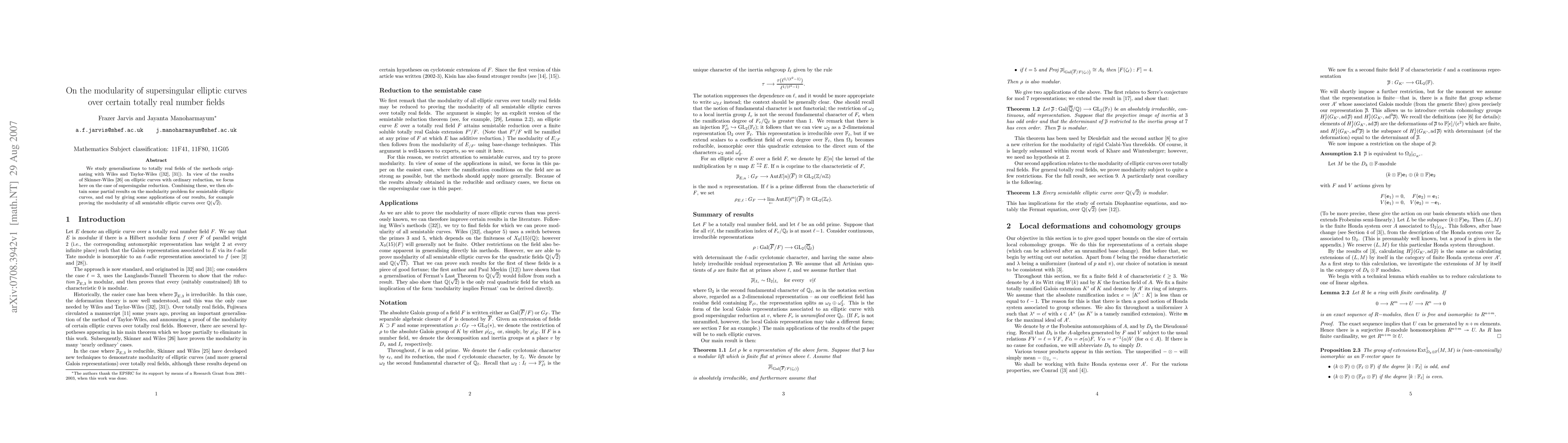 This paper extends Wiles and Taylor-Wiles' methods to totally real fields, focusing on supersingular elliptic curves and achieving partial results on the modularity problem for semistable curves. It concludes by proving the modularity of all semistable elliptic curves over $\mathbb{Q}(\sqrt{2})$.