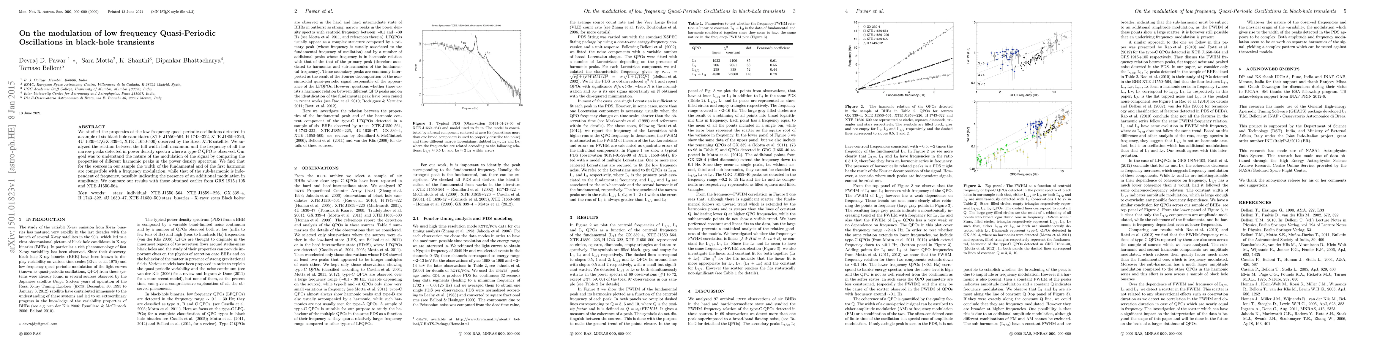 This paper investigates the modulation of low-frequency quasi-periodic oscillations (QPO) in six black hole candidates, finding that the fundamental and first harmonic peaks correlate with frequency modulation, while sub-harmonic peaks suggest additional amplitude modulation. Comparisons with previous studies on GRS 1915+105 and XTE J1550-564 support these findings.