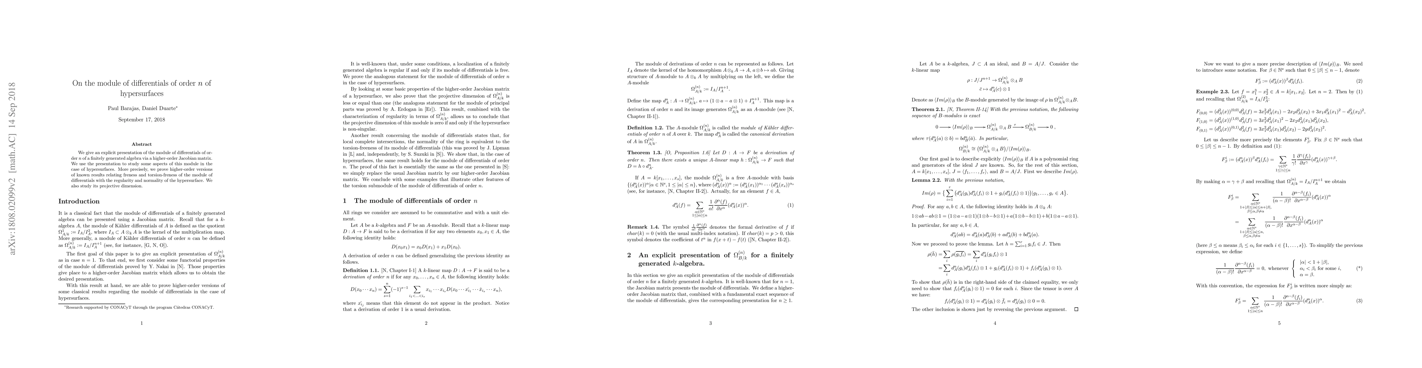 Researchers provide a new method to study the module of differentials of order n for hypersurfaces, linking it to regularity and normality, and projective dimension.