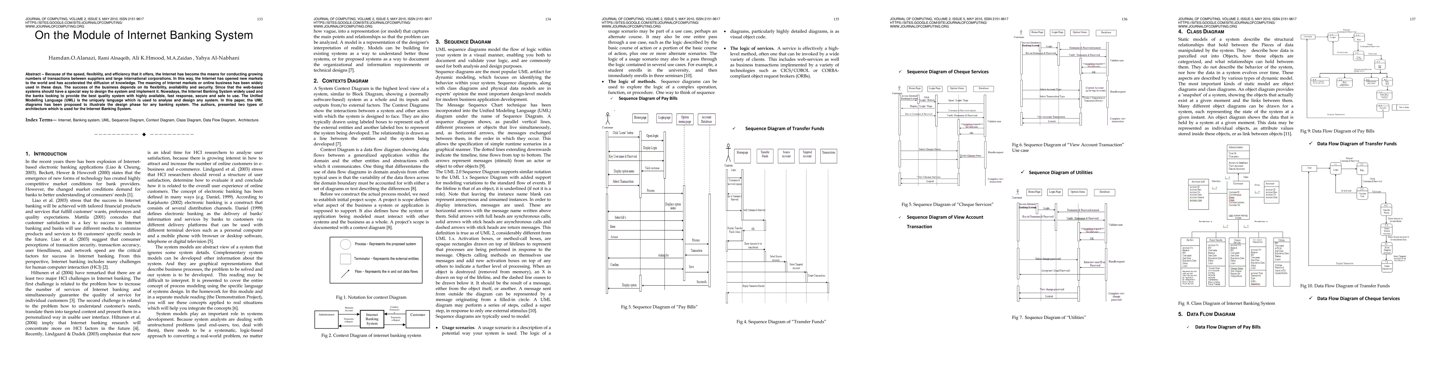 Because of the speed, flexibility, and efficiency that it offers, the Internet has become the means for conducting growing numbers of transactions between suppliers and large international corporations. In this way, the Internet has opened new markets to the world and has accelerated the diffusion of knowledge. The meaning of Internet markets or online business has been widely used in these days. The success of the business depends on its flexibility, availability and security. Since that the web-based systems should have a special way to design the system and implement it. Nowadays, the Internet Banking System widely used and the banks looking to provide the best quality system with highly available, fast response, secure and safe to use. The Unified Modelling Language (UML) is the uniquely language which is used to analyse and design any system. In this paper, the UML diagrams has been proposed to illustrate the design phase for any banking system. The authors, presented two types of architecture which is used for the Internet Banking System.