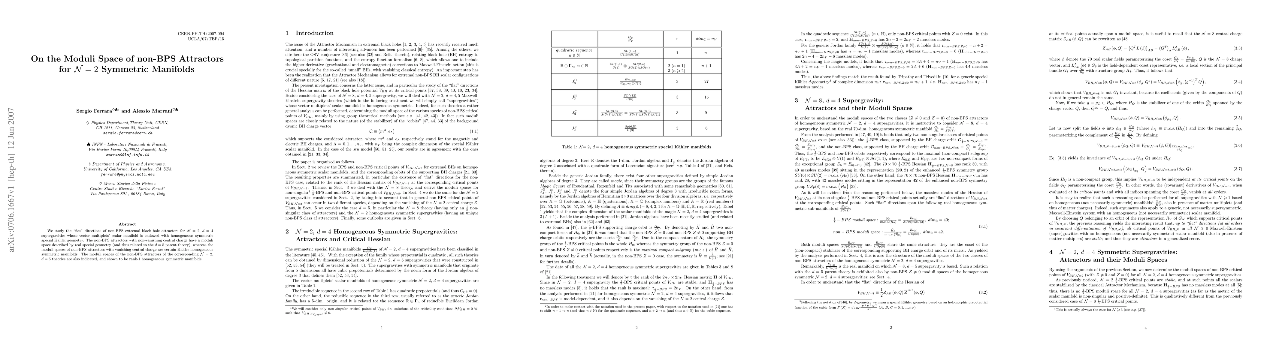This paper investigates the moduli spaces of non-BPS extremal black holes in N=2, d=4 supergravities, focusing on their "flat" directions. It reveals that non-BPS attractors with non-zero central charge relate to real special geometry, while those with zero central charge correspond to Kahler homogeneous symmetric manifolds.