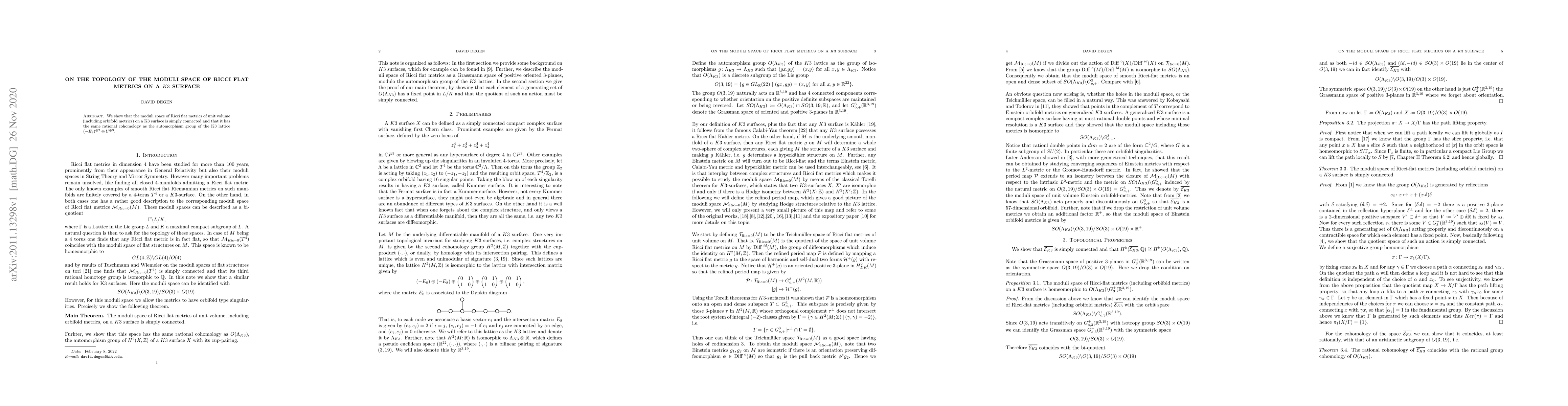 Summary: The research demonstrates that the moduli space of Ricci flat metrics on a K3 surface, considering unit volume and orbifold metrics, is simply connected and shares the same rational cohomology as the automorphism group of the K3 lattice.