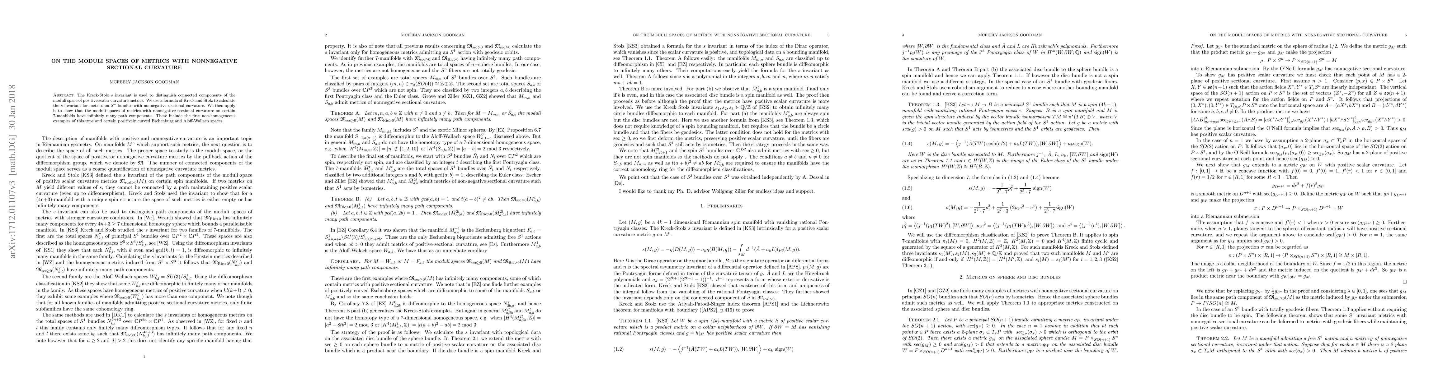 The paper uses the Kreck-Stolz s invariant to distinguish components in the moduli space of metrics with nonnegative sectional curvature, demonstrating infinitely many path components in certain 7-manifolds, including non-homogeneous examples and positively curved Eschenburg and Aloff-Wallach spaces.