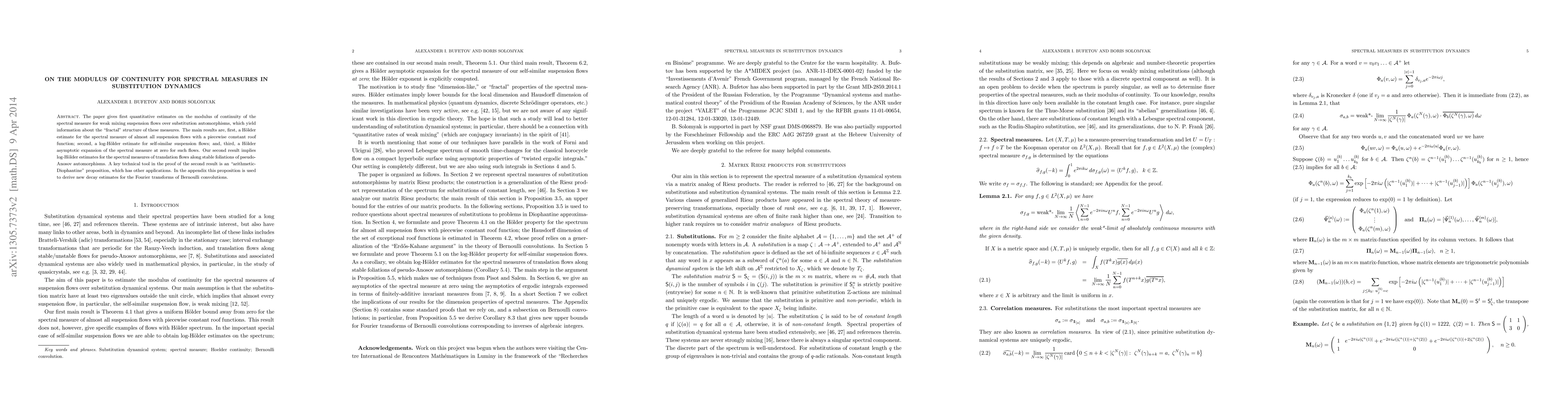 Researchers developed quantitative estimates for the modulus of continuity of spectral measures in substitution dynamics, shedding light on the fractal structure of these measures for various types of flows.