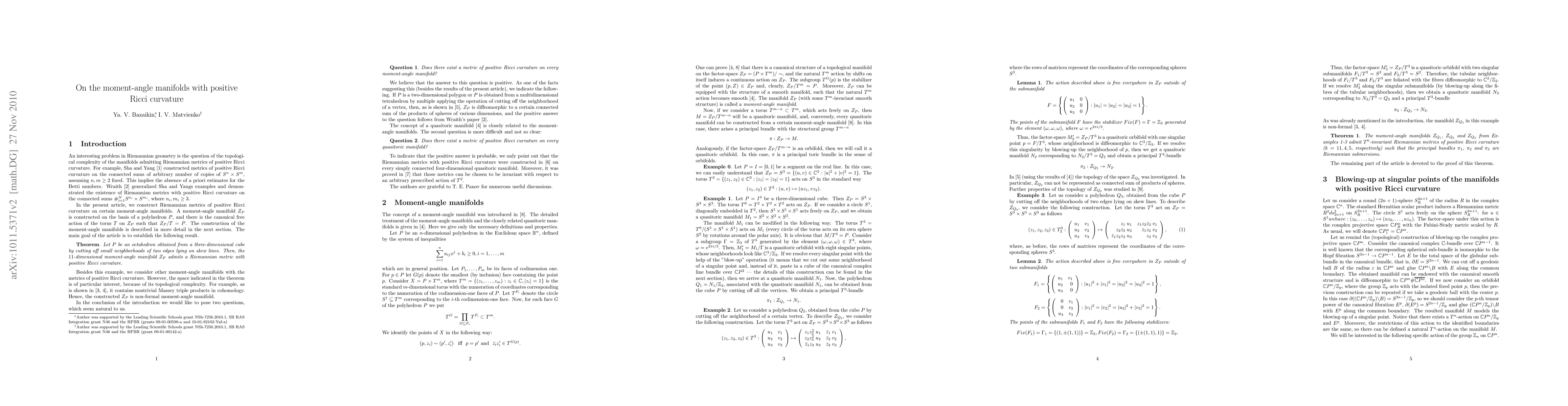 Summary: This study constructs Riemannian metrics with positive Ricci curvature on selected moment-angle manifolds, contributing to the understanding of their geometric properties.