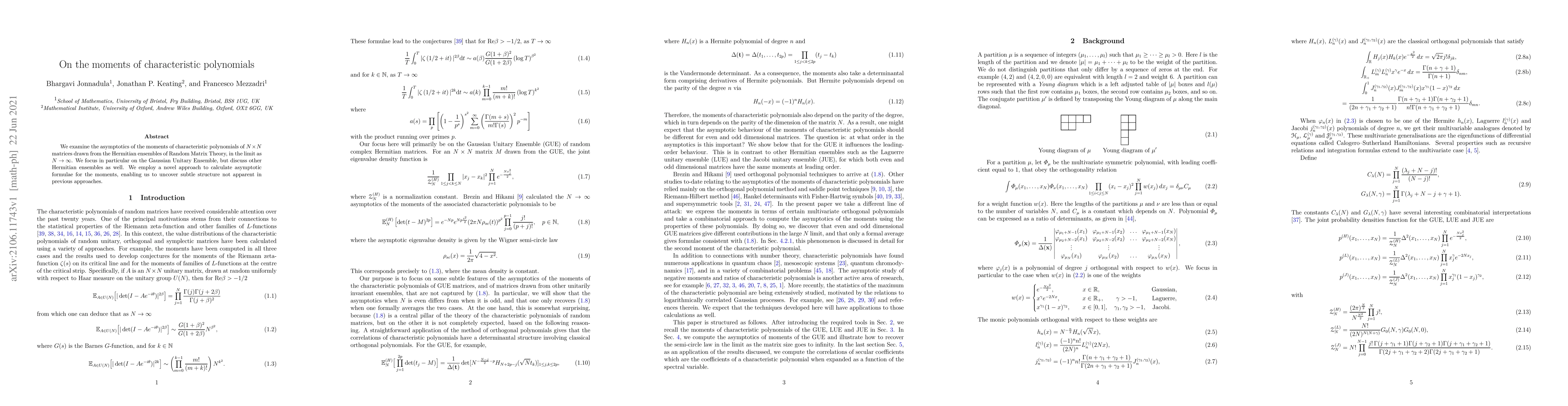 This paper investigates the asymptotic behavior of moments of characteristic polynomials from Hermitian ensembles, particularly the Gaussian Unitary Ensemble, as matrix size $N$ approaches infinity. The authors introduce a new method to derive these asymptotic formulae, revealing previously unnoticed structural details.