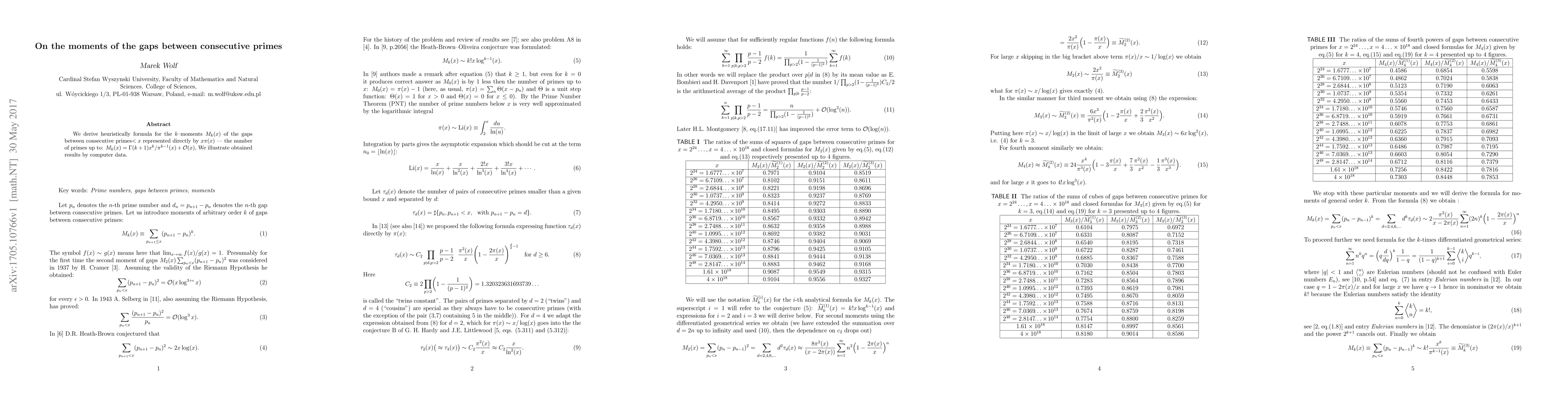 We derive heuristically formula for the $k$--moments $M_k(x)$ of the gaps