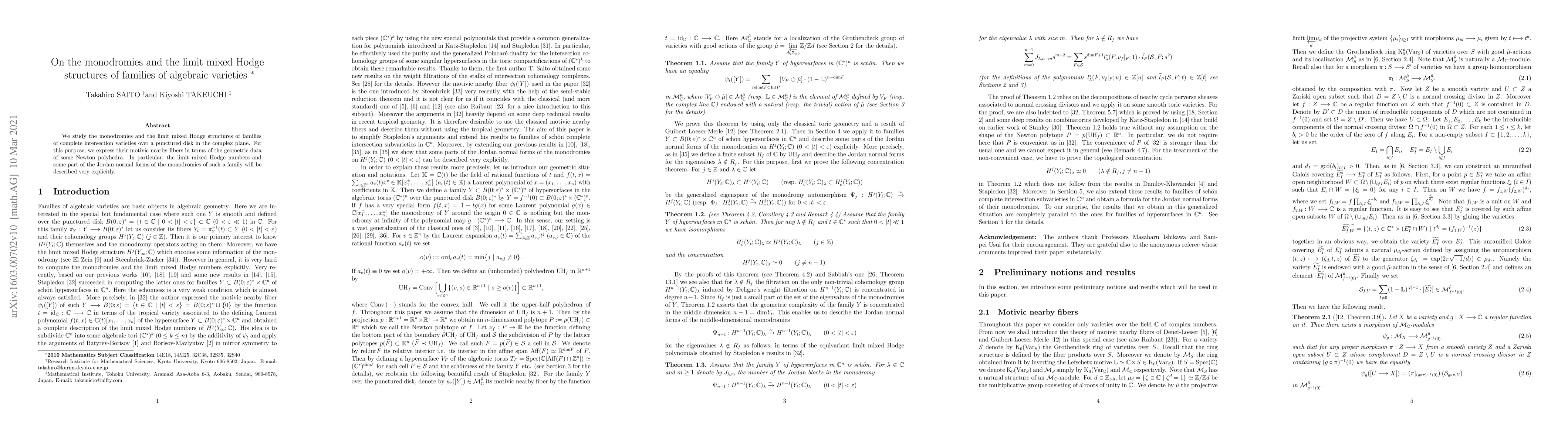 We study the monodromies and the limit mixed Hodge structures of families of complete intersection varieties over a punctured disk in the complex plane. For this purpose, we express their motivic nearby fibers in terms of the geometric data of some Newton polyhedra. In particular, the limit mixed Hodge numbers and some part of the Jordan normal forms of the monodromies of such a family will be described very explicitly.